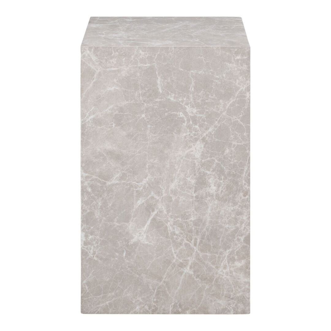 Geef je interieur een stijlvolle upgrade met deze marmerkleurige bijzettafel. Het compacte, vierkante formaat past moeiteloos naast bank of bed en voegt een luxe touch toe zonder veel ruimte in te nemen.