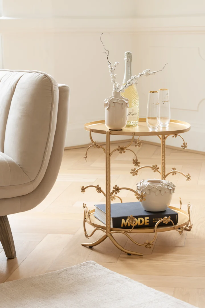 Til je interieur naar een hoger niveau met deze elegante bijzettafel in warm goud. De ideale blikvanger naast je bank, bed of in de hal.