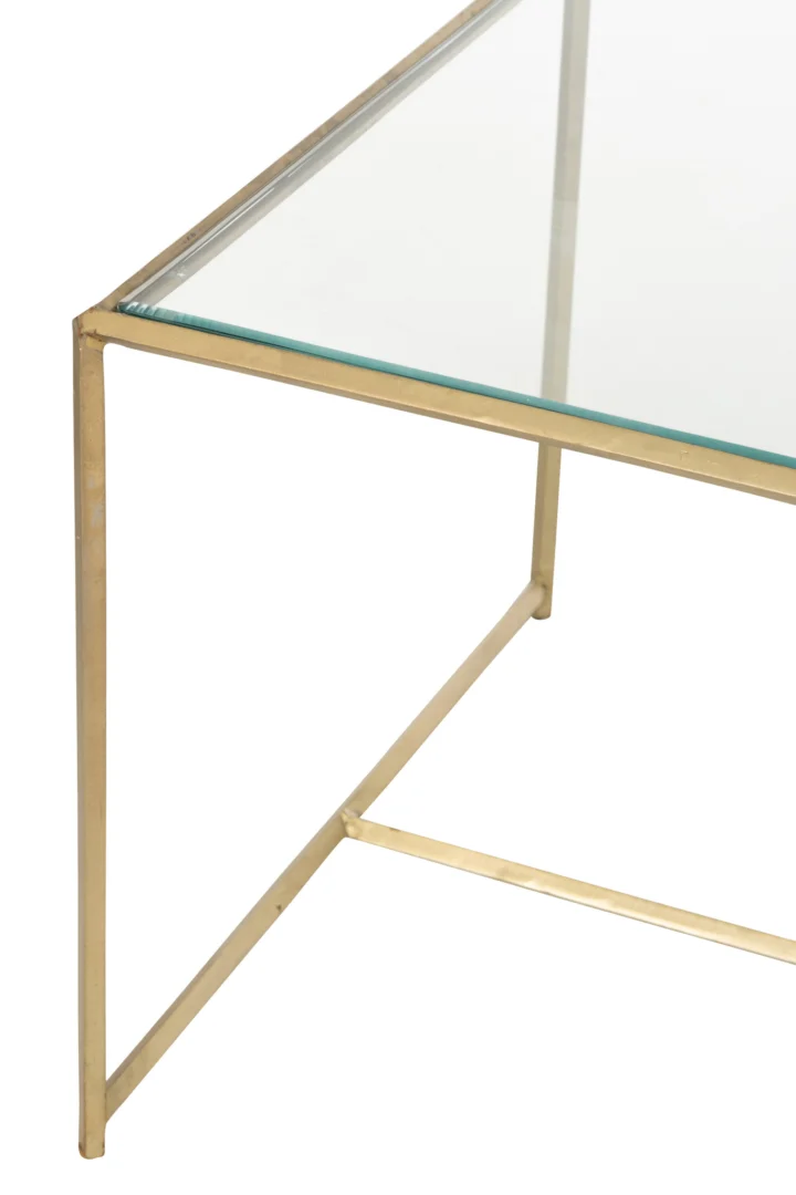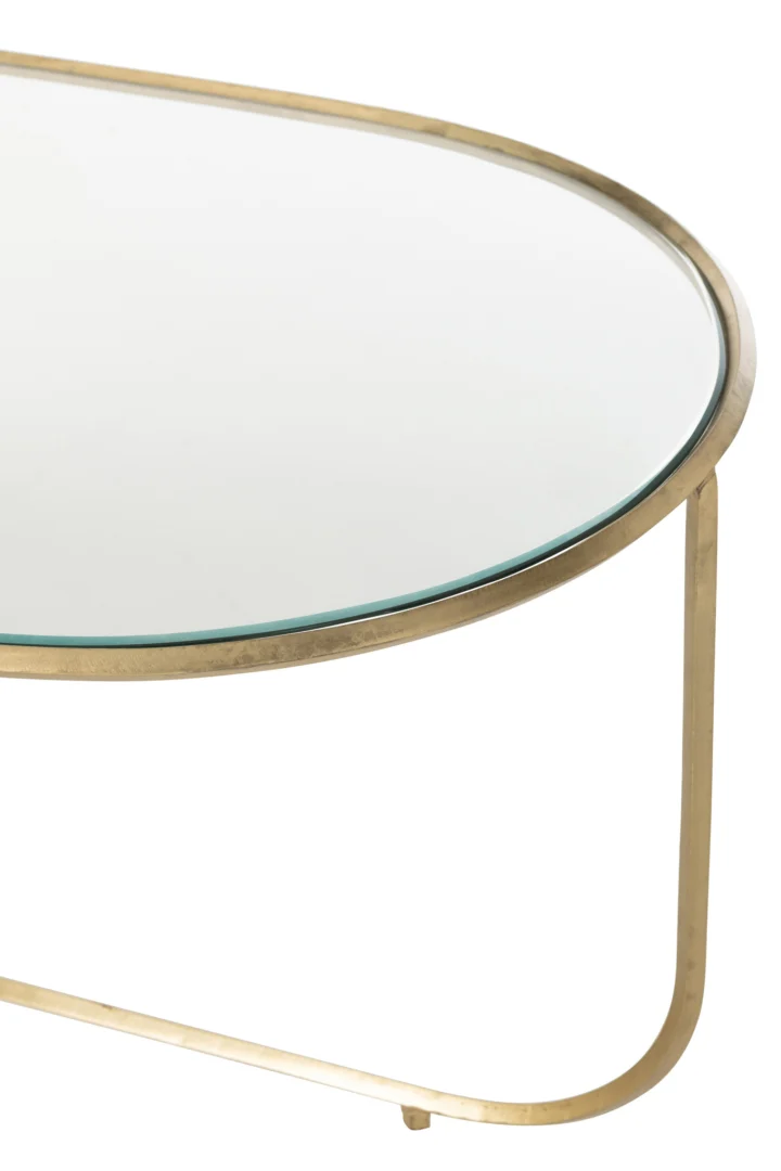 Materiaal: 40% glas, 60% ijzer. Kleur: goud. Onderhoud: afnemen met een zachte (licht) vochtige doek; vermijd agressieve reinigers en gebruik onderzetters. Afmetingen: L76 x B62 x H35 cm. Gewicht: 20,8 kg. Levertijd: binnen 5 dagen.