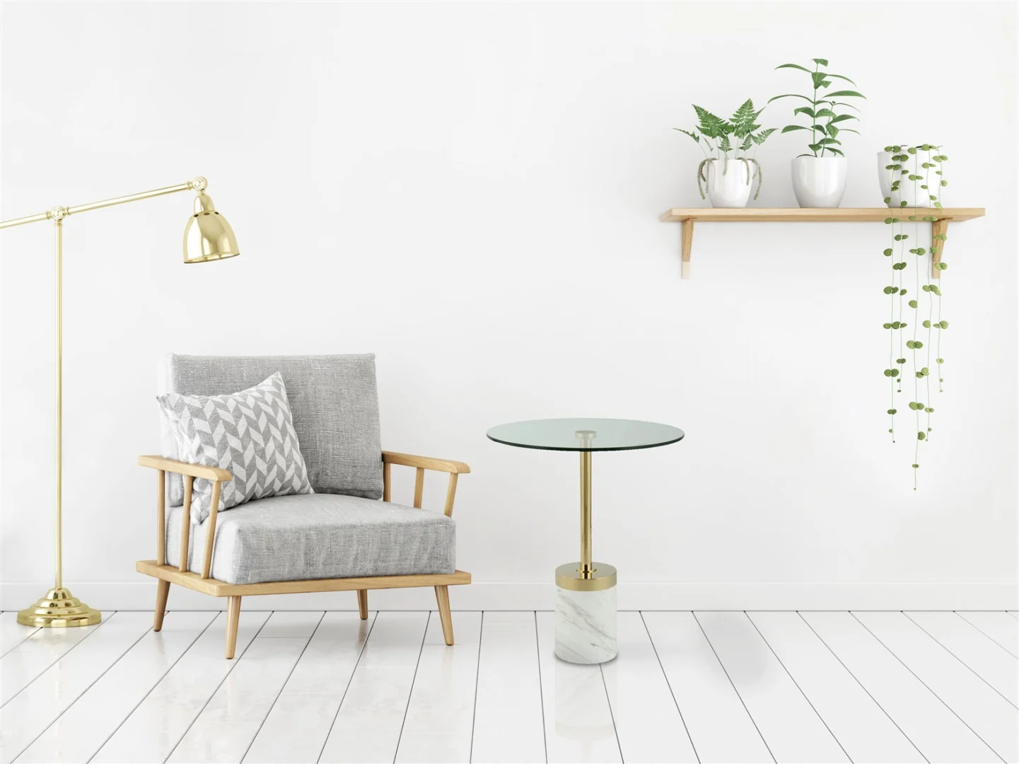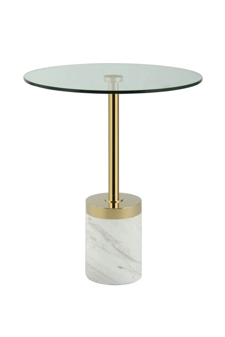 Materialen: 100% roestvrij staal, 100% glas, 100% marmer. Kleur: goud/wit. Land van herkomst: China. Verzendklasse: Standard. Onderhoud: stofvrij houden met een zachte, droge doek; gebruik onderzetters en vermijd agressieve schoonmaakmiddelen.