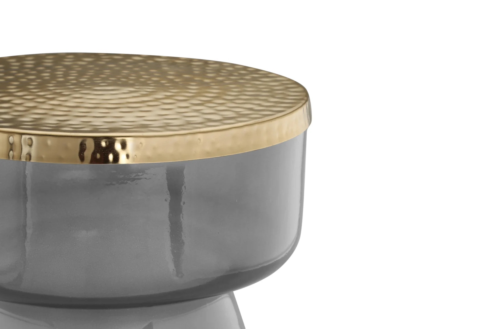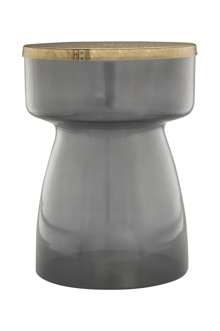 Geef je interieur een vleugje luxe met deze elegante bijzettafel: een retro beauty met handgeblazen glazen voet en een goudkleurig metalen blad dat meteen in het oog springt.