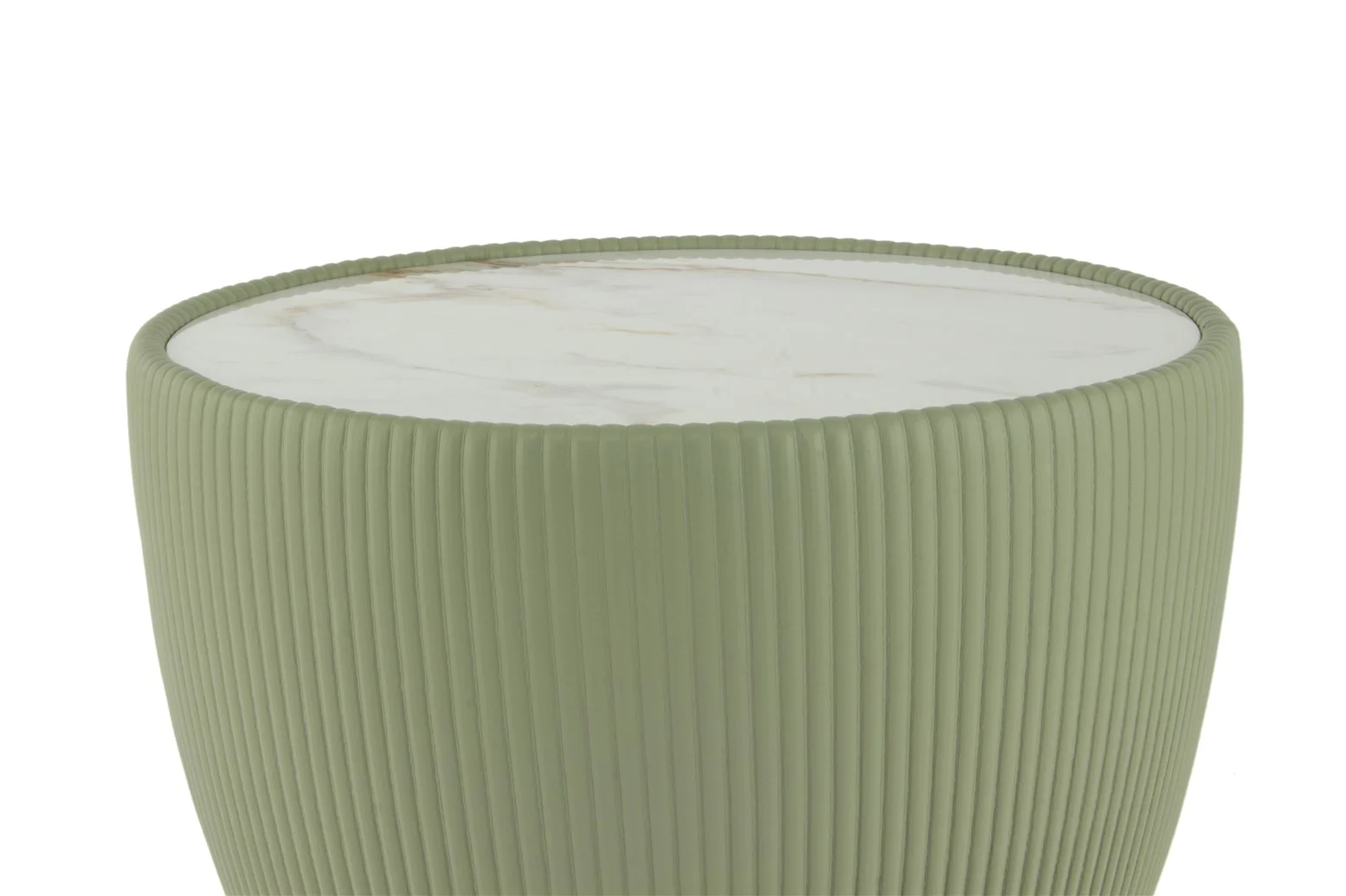 Deze bijzettafel past goed naast een leesstoel in een rusthoek. De gesinterde steentop is stevig en gemakkelijk te reinigen, terwijl de groene kleur visueel opvalt. Minder praktisch is het beperkte draagvlak. Ideaal voor wie waarde hecht aan stijlvolle accenten. Een doordachte aankoop voor decoratieve doeleinden.