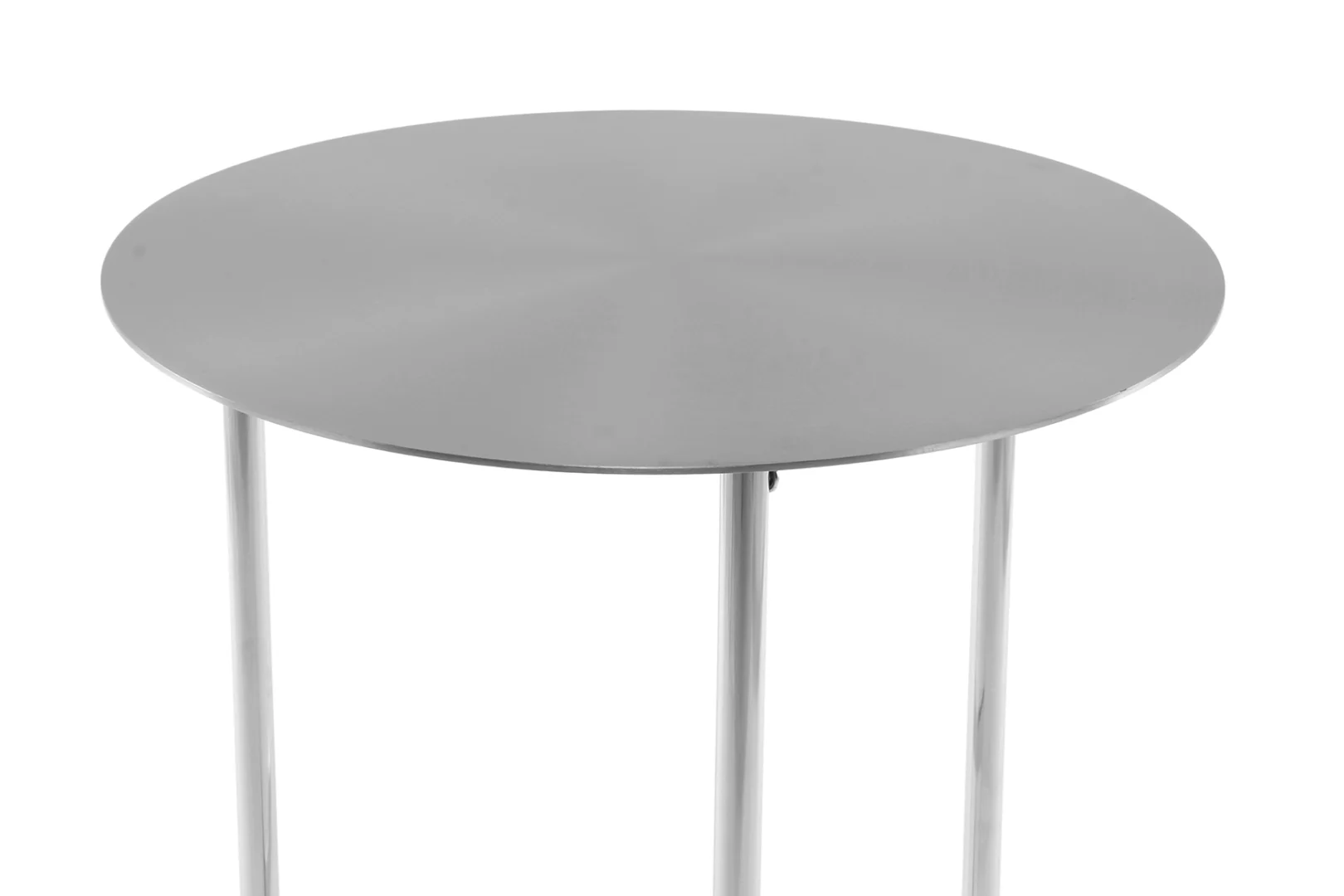 Geef je interieur een moderne upgrade met deze strakke bijzettafel in zilver. Het minimalistische frame van 100% roestvrij staal oogt luchtig, terwijl de ronde legplank slimme extra opbergruimte biedt.