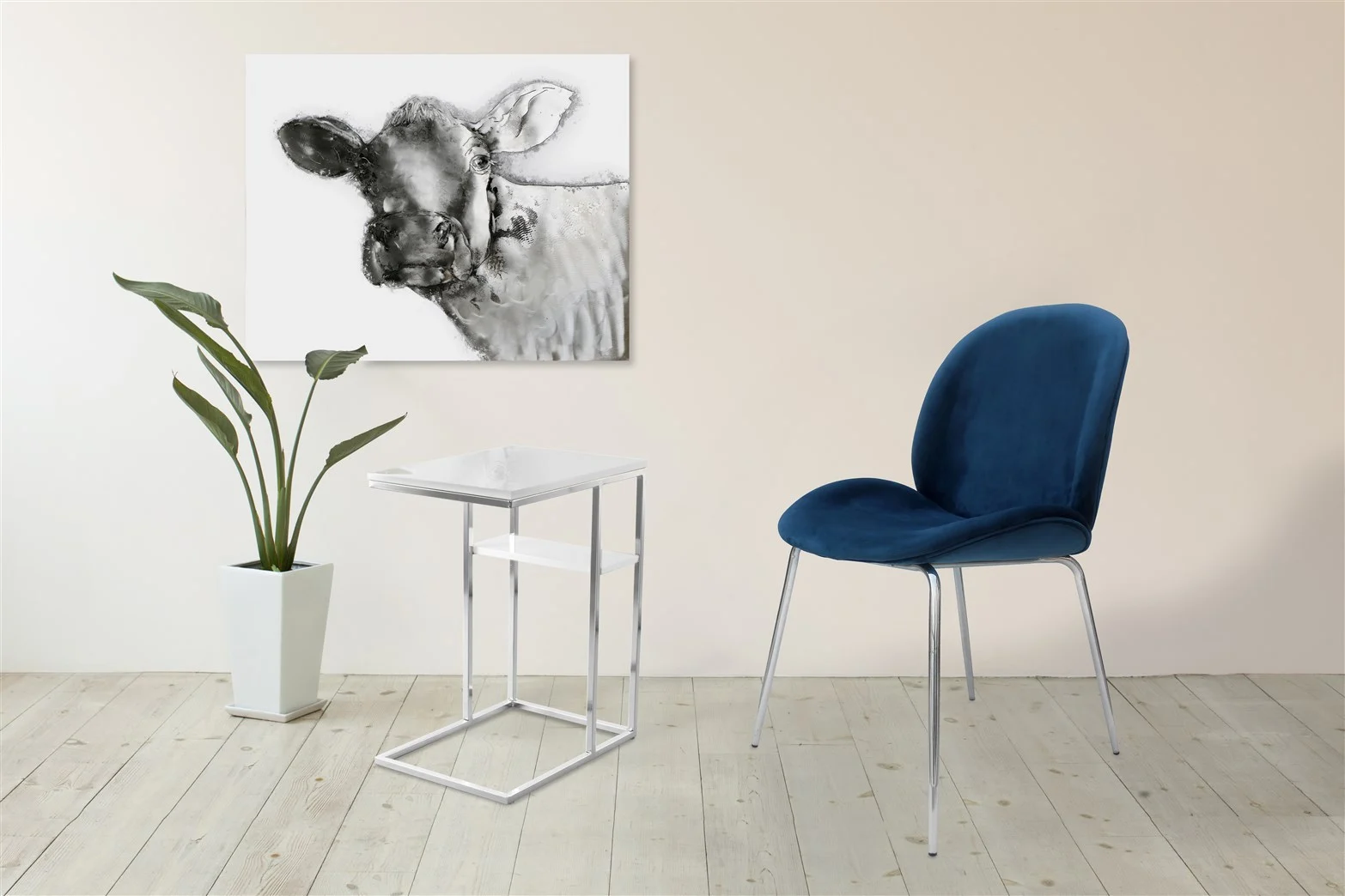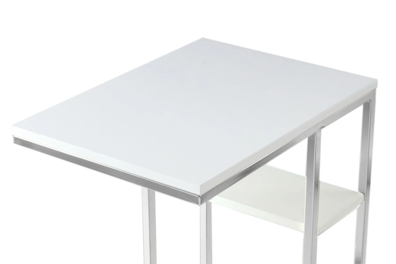 Geef je woonkamer, hal of slaapkamer een stijlvolle upgrade met deze moderne bijzettafel. Het hoogglans witte bladenspel en het zilverkleurige stalen frame bieden meerdere legplanken, zodat je essentials altijd netjes geordend zijn.
