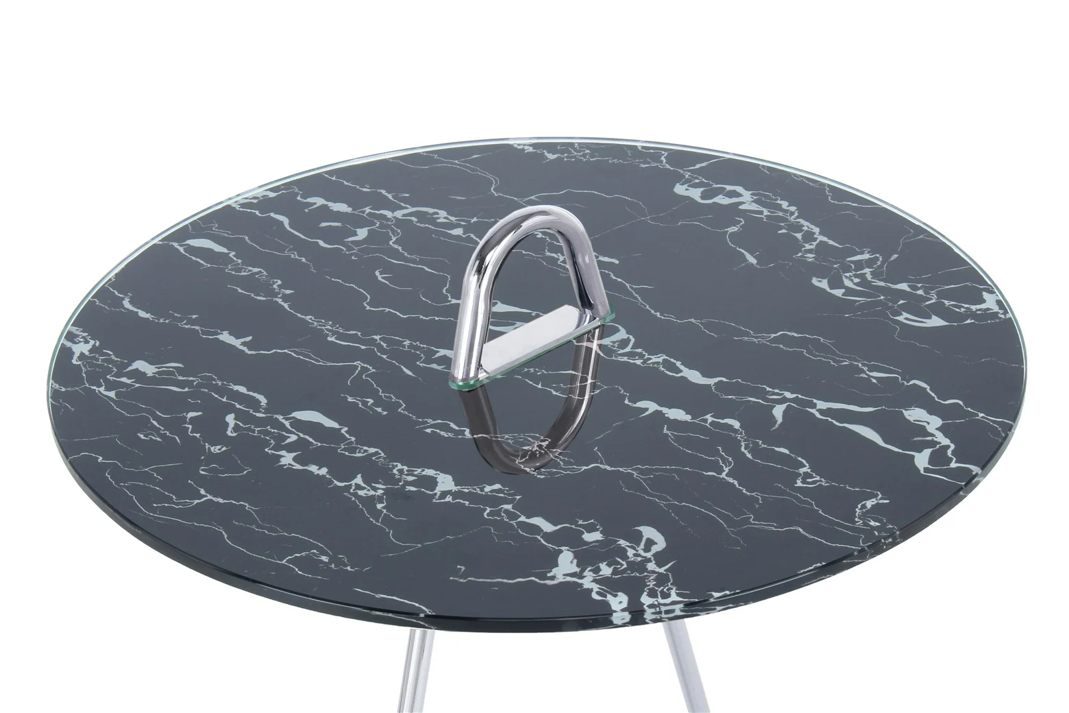 Ideaal naast de bank voor een kop koffie of boek. Het zwarte staal geeft stevigheid, terwijl de marmerlook chic oogt. Licht en makkelijk te verplaatsen. Het glazen blad vraagt wel om voorzichtigheid. Perfect voor stijlbewuste interieurliefhebbers. Een goede keuze.