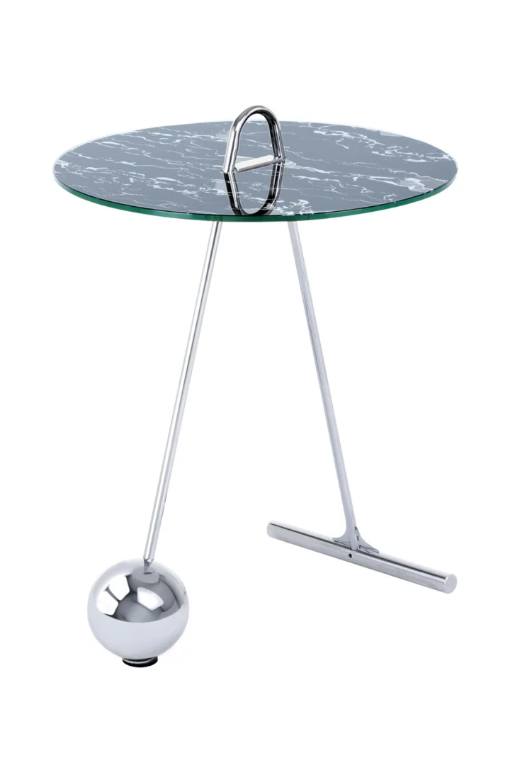 Geef je interieur een stijlvol accent met deze compacte bijzettafel in zilver/zwart. Het marmerlook blad en het elegante frame met pendelvorm voegen direct klasse toe aan je woonkamer, slaapkamer of kantoor.
