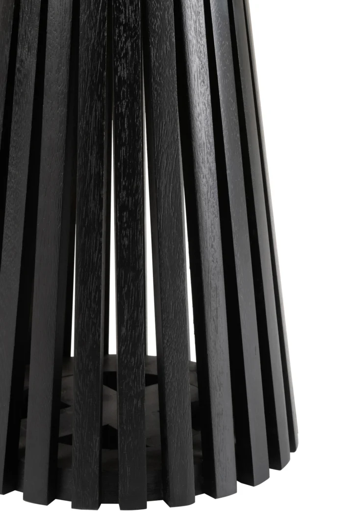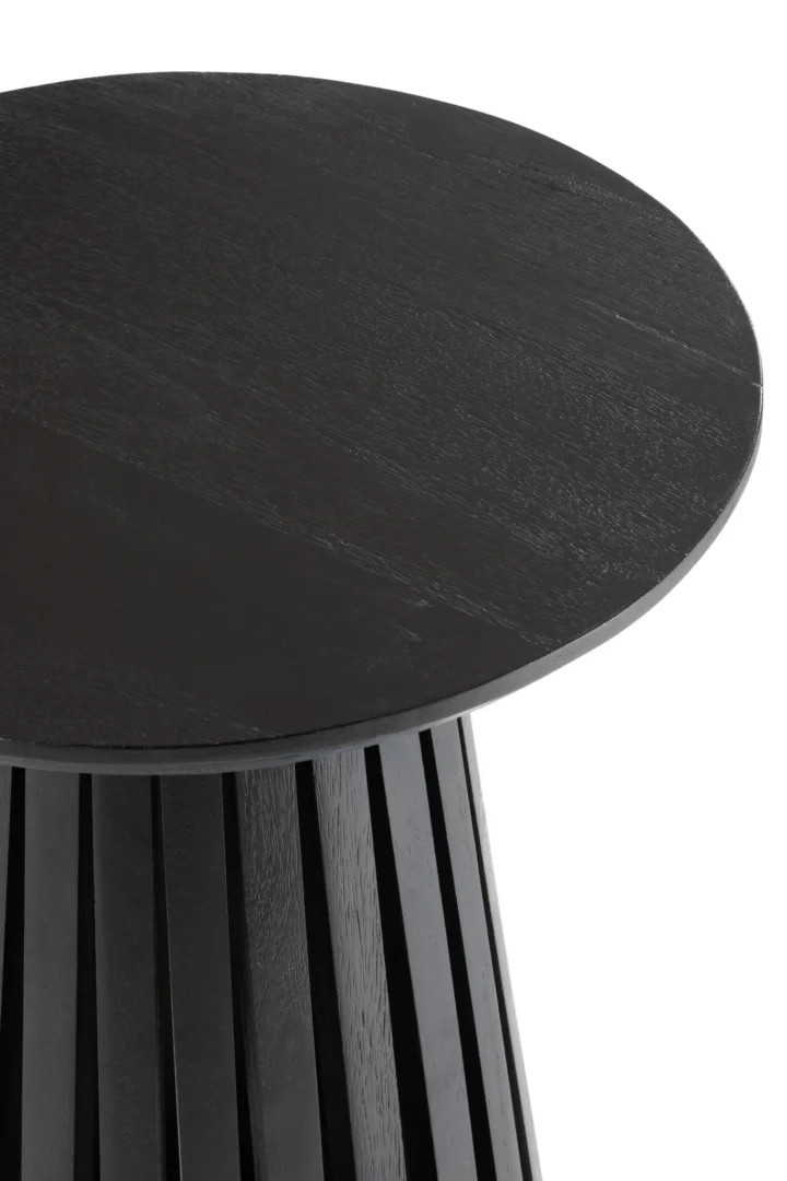 Geef je interieur een stijlvolle upgrade met deze zwarte bijzettafel van mangohout en metaal. Met een compact blad van 40 x 40 cm en een hoogte van 52 cm past hij moeiteloos naast je bank, bed of in een gezellige leeshoek.