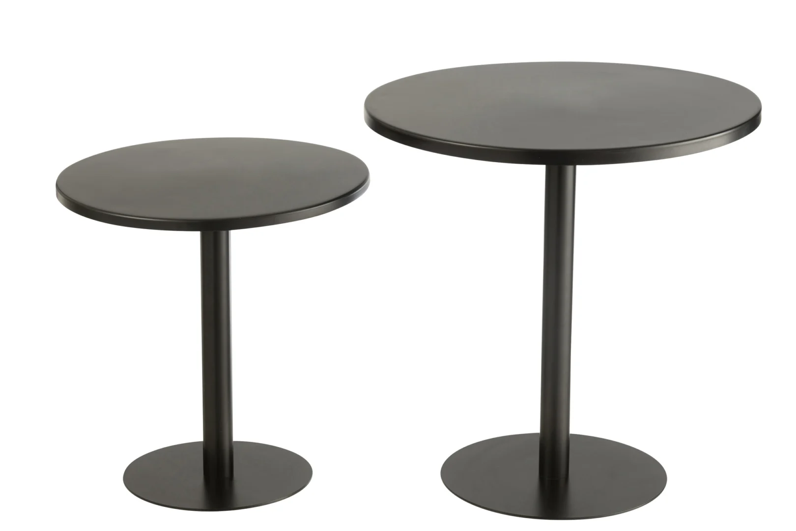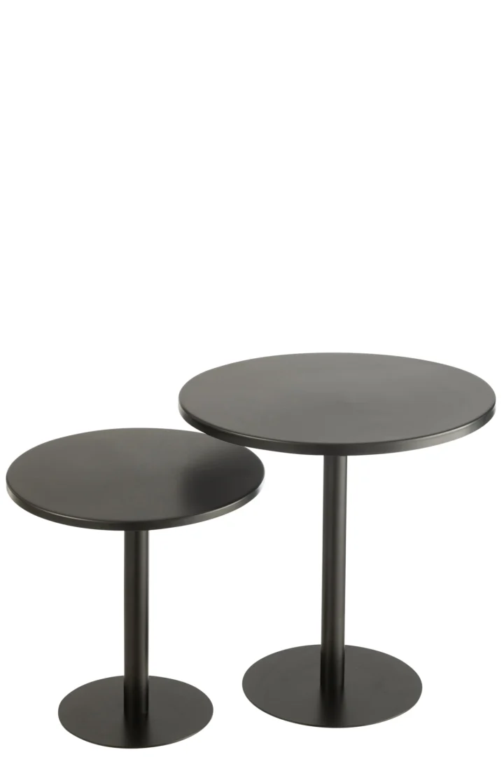 Set van 2 bijzettafels, rond, zwart metaal. Afmetingen: 50 x 40 x 50 cm, gewicht: 7,9 kg. Onderdeel van de Winter 2024-collectie. Gemaakt van 100% ijzer. Montage vereist.