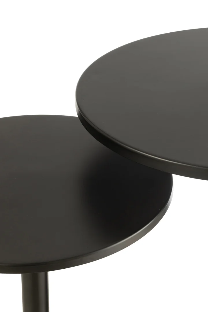 Collection van 2 ronde bijzettafels van zwart metaal.