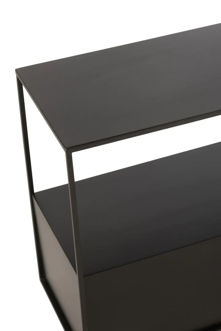 Ideaal naast de bank voor koffie en een boek. De solide metalen poten geven stabiliteit, terwijl het strakke zwarte ontwerp moeiteloos in moderne interieurs past. Minder geschikt voor zware objecten. Een goede keuze voor stijlbewuste gebruikers met beperkte ruimte.