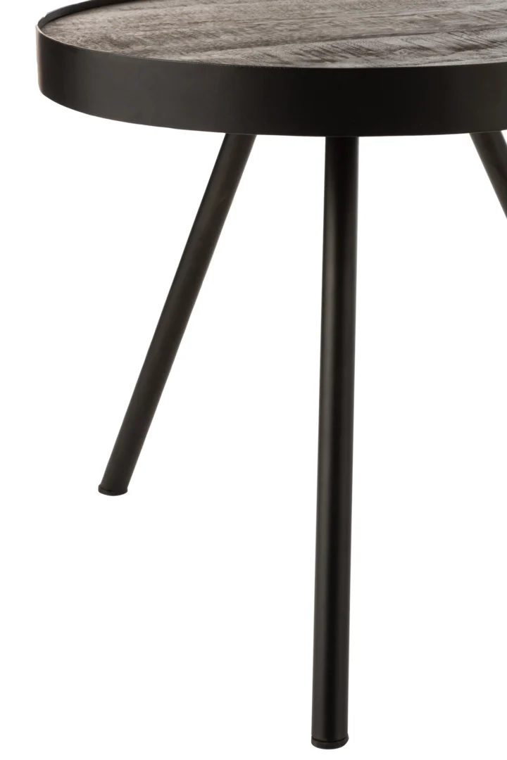 Dankzij het ruime blad heb je plek voor een kop koffie, een leeslamp of je mooiste accessoires. Het metalen onderstel geeft een industriële touch, terwijl het mangohout warmte en karakter toevoegt. Door het compacte formaat past hij ook perfect in kleinere ruimtes.