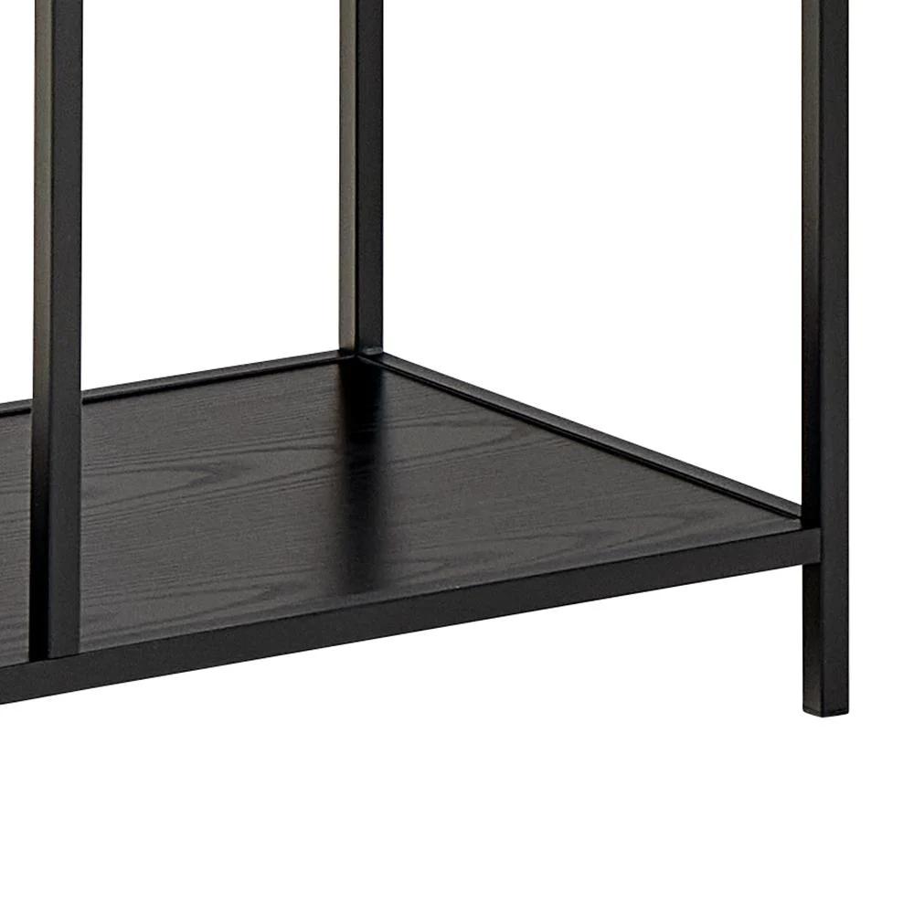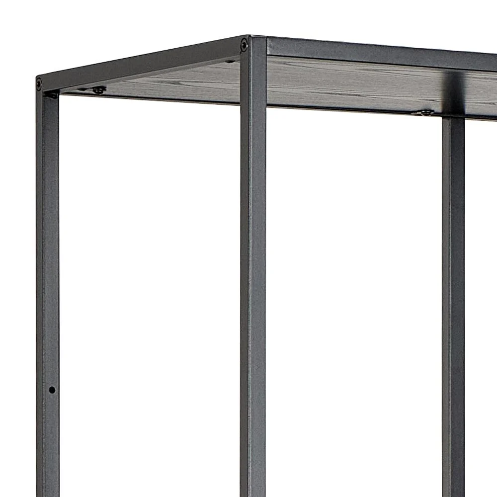 Materiaal: MDF en staal. Kleur: mat zwart met aszwarte accenten. Montage: eenvoudige zelfmontage (flatpack). Verstelbare planken: nee. Netto gewicht: 22,4 kg.