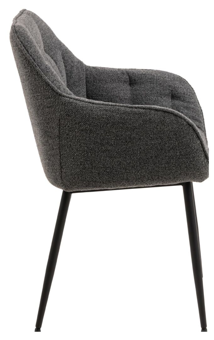 Steunende rondingen, een stabiel frame en een zitting die je meteen verwelkomt. Deze eetstoel in antraciet Monza-stof met subtiel tuftwerk combineert dagelijkse degelijkheid met zachte tactiliteit.