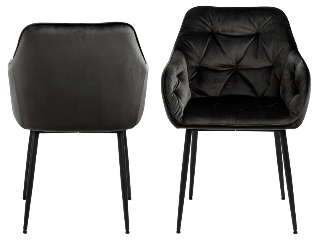 Materiaal & onderhoud: 100% polyester; afnemen met zachte doek, vlekken plaatselijk reinigen. Afmetingen: H83 x B58 x D55 cm; zithoogte 47 cm; zitbreedte 41 cm; zitdiepte 40,5 cm. Kleur: grijsbruin met matzwarte poten. Max. draagkracht: 110 kg. Combineert fraai met eettafels, banken of gemixte zitsets.