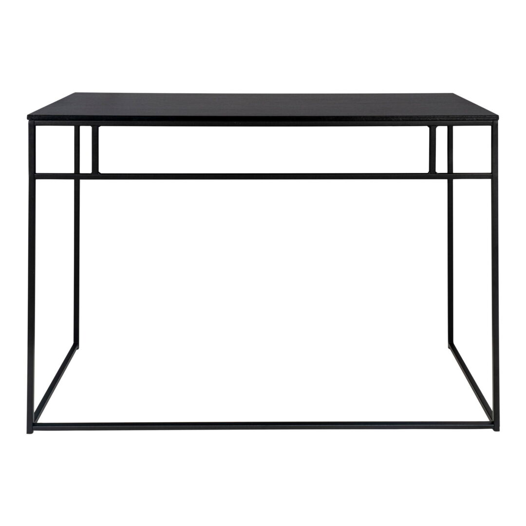 Strakke lijnen. Stille efficiëntie. Pure focus. Dit compacte, diepzwarte bureau creëert meteen rust in je werkplek: 100 × 45 × 75 cm, met een stevig stalen frame en onderhoudsvriendelijke melaminetop op spaanplaat.