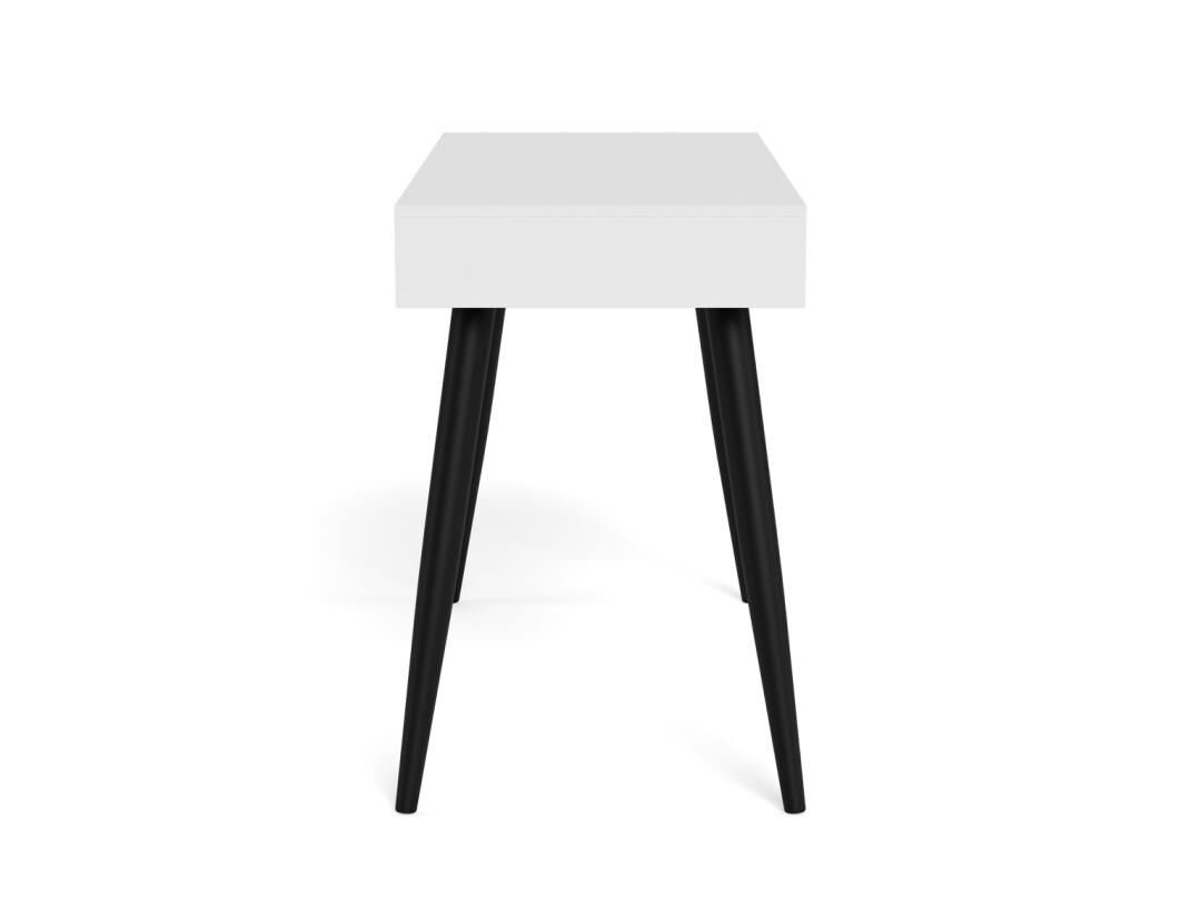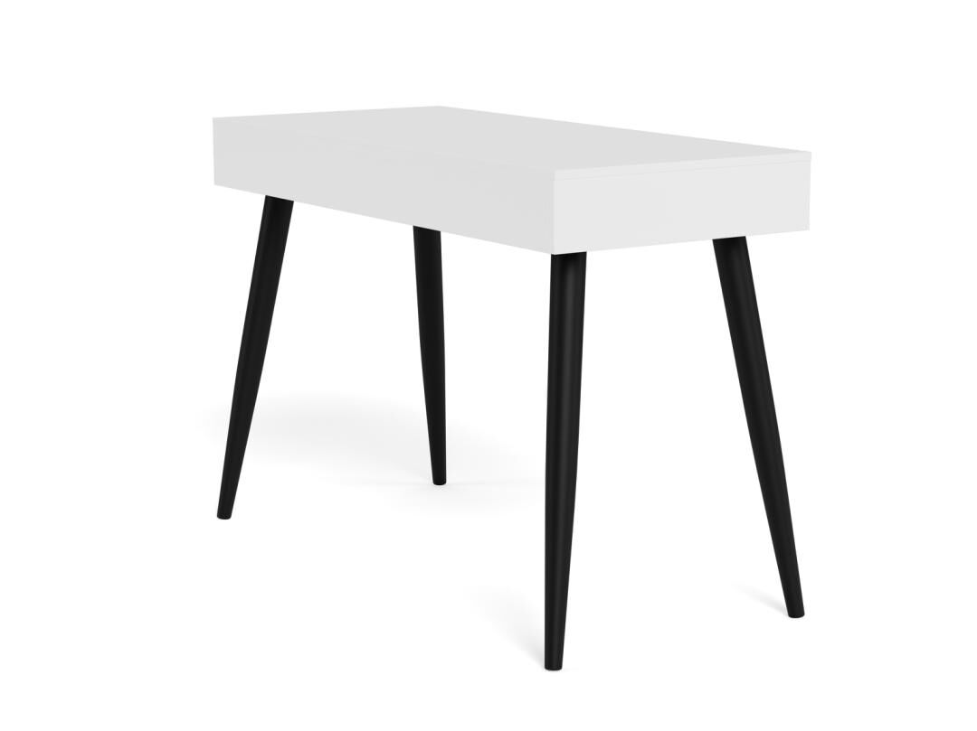 Het rechthoekige blad van 110 x 50 cm voelt ruim en licht, terwijl de solide constructie tot 100 kg ondersteunt. Je houdt kleine items netjes uit het zicht en werkt geconcentreerd op een rustige, georganiseerde werkplek. Kunststof voetdoppen beschermen de vloer tegen krassen.