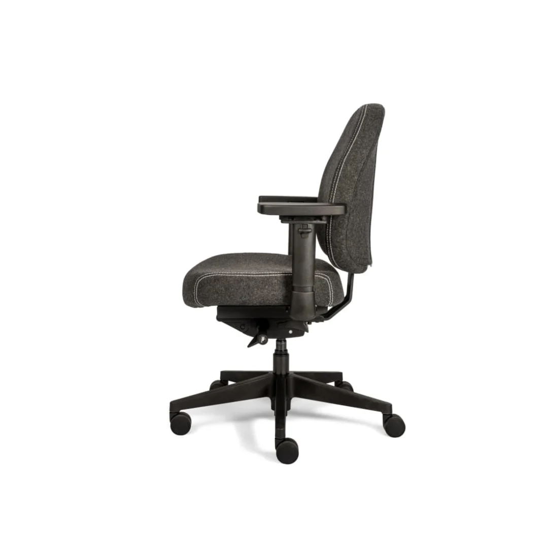 Compacte bureaustoel met goede ergonomie en ademende stof; minder geschikt voor langdurig zitten. Prima keuze voor thuiswerkers.