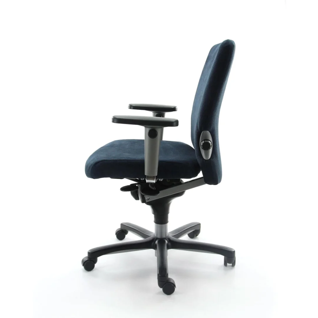 Comfortabele bureaustoel voor langdurig zitten; goede ondersteuning, verstelbaar. Bekleding minder ademend. Geschikt voor thuis- en kantoorgebruik.