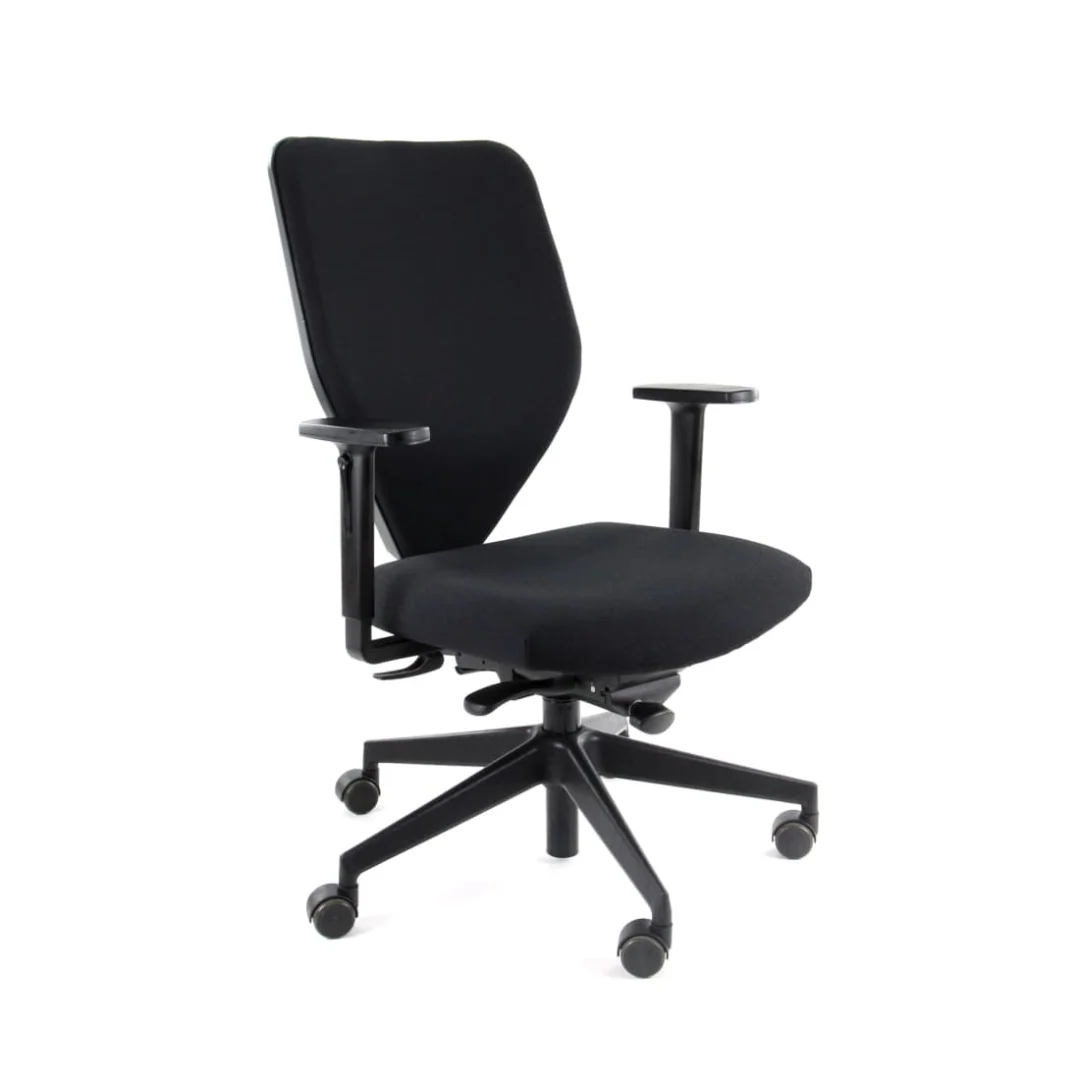 Comfortabele bureaustoel met goede verstelbaarheid en draaifunctie; armleuningen voelen wat minder solide. Geschikt voor dagelijks kantoorgebruik.