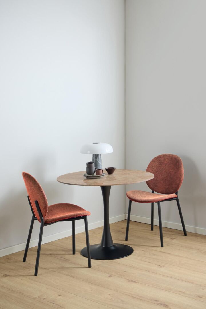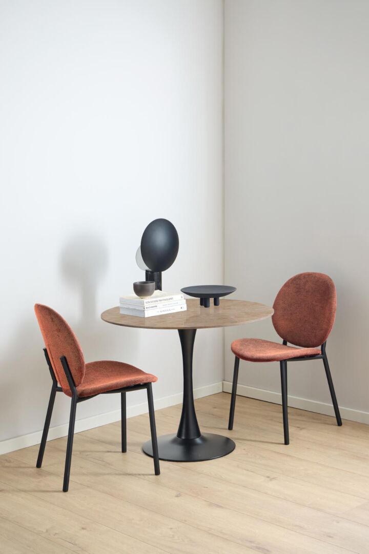 Steunrijke rondingen, een solide frame en een zit die je meteen verwelkomt. In warm terracotta voelt deze eetkamerheld luchtig en toch zeker, perfect voor lange avonden aan tafel.
