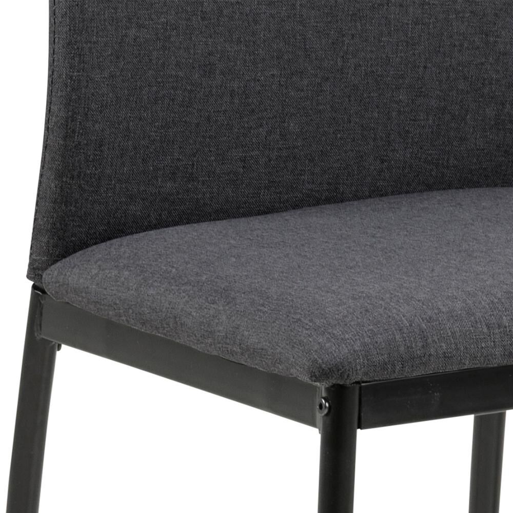Materiaal & care: stofzuig met zachte borstel, vlekken deppen met licht vochtige doek. Afmetingen: zithoogte ca. 48,5 cm; zitdiepte 40 cm; totale HxBxD 92 x 43,5 x 53 cm. Kleur: grijs met zwarte poten. Combineert mooi met houten of metalen tafels en gemixte zitsets.