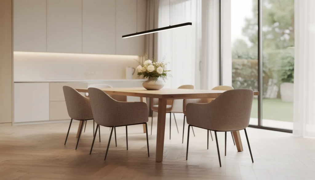 • Rond een rechthoekige tafel van 200 cm passen doorgaans 6–8 eetkamerstoelen, afhankelijk van de breedte