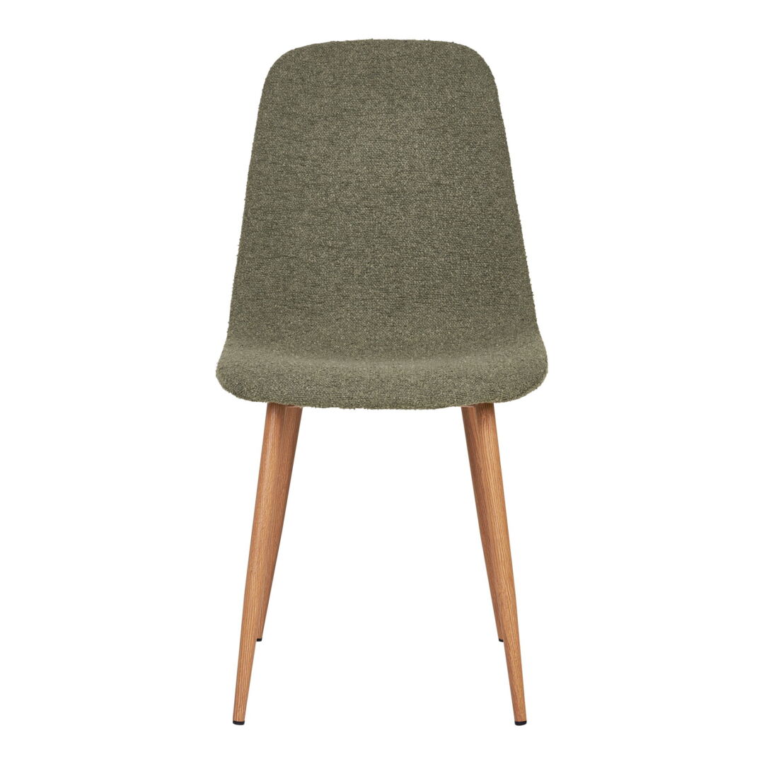 Deze eetkamerstoel zit comfortabel tijdens lange diners en ziet er stijlvol uit met zijn donkergroene bouclé. De houtlook poten geven een warme uitstraling en de montage is eenvoudig. Minder geschikt voor wie liever armleuningen wil. Aanrader voor liefhebbers van modern design.