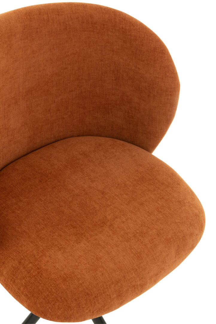 Strakke lijnen, eerlijke materialen en een zit die je uitnodigt om te blijven. Deze eetkamerstoel in roest-oranje combineert slank design met dagelijks comfort. Je schuift makkelijk aan en blijft graag zitten.