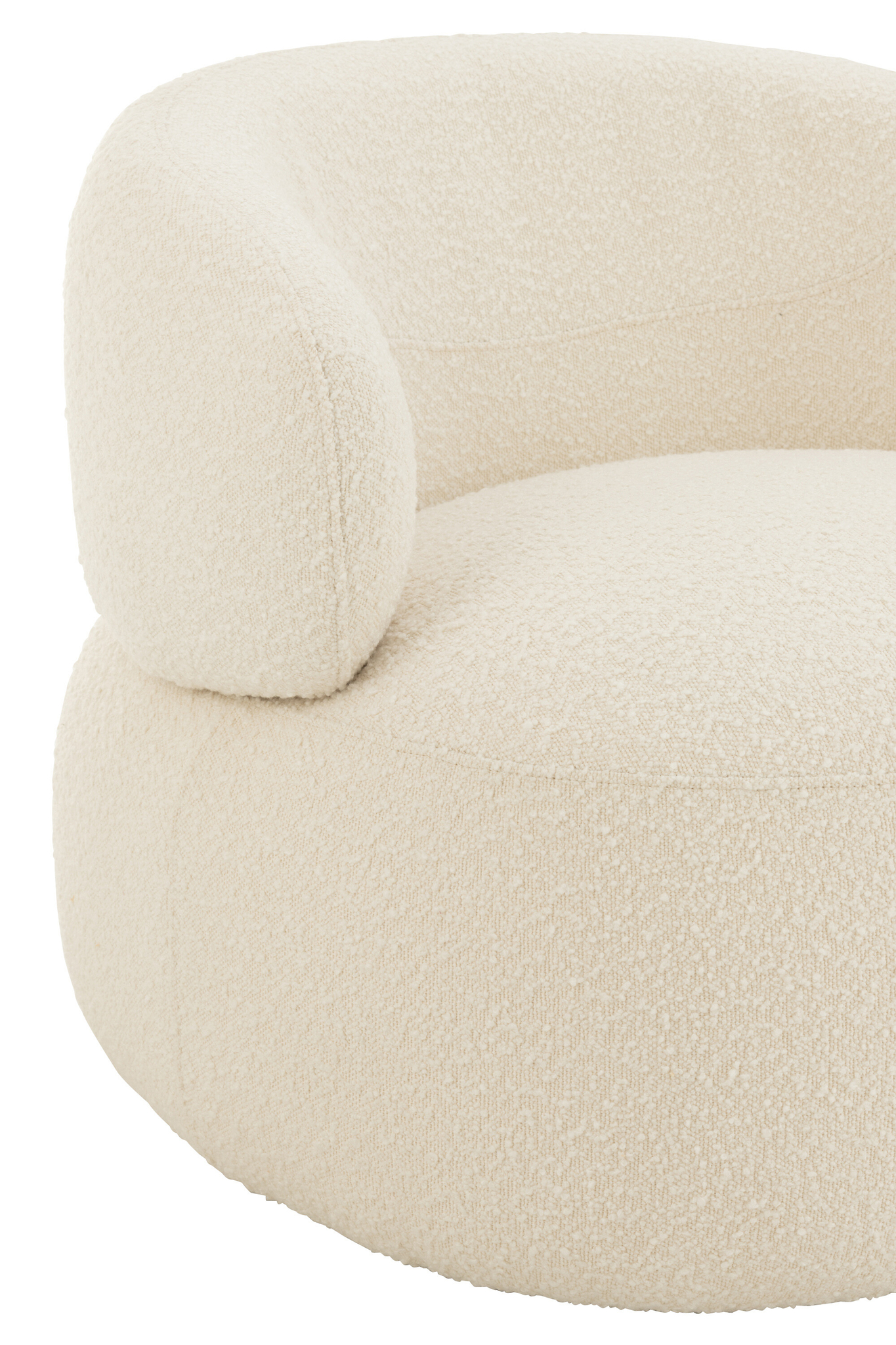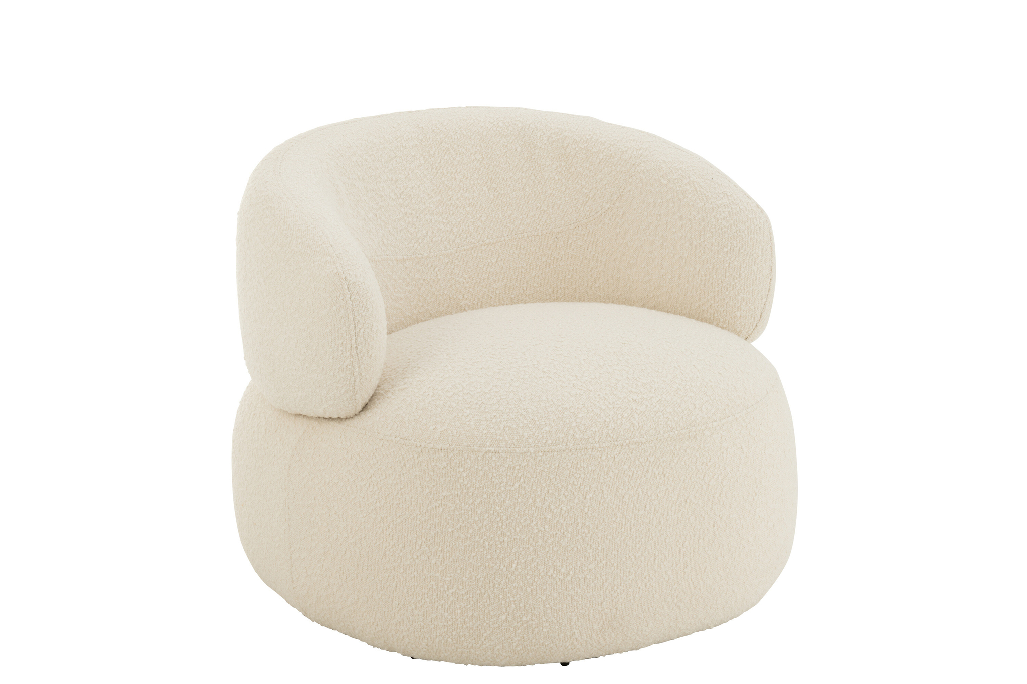 Ontspan in een ivoorkleurige draaifauteuil van J-Line; frame van populierenhout (40%), afgewerkt met schuim (35%) en stof (25%). Afmeting 85 bij 82 centimeter, zithoogte 47 cm; licht 22,8 kg, draaggewicht 115 kg. Ideaal voor een leeshoek of gezellige woonkamer.