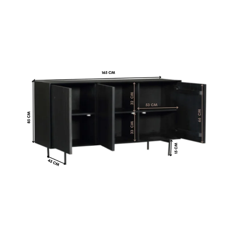 Met zijn royale afmetingen en praktische opbergmogelijkheden is dit meubel perfect voor het organiseren van je spullen zonder in te boeten op stijl. Plaats het in je woonkamer, eetkamer of hal voor een indrukwekkende indruk. Dankzij de hoogwaardige materialen is het een duurzame keuze die jarenlang meegaat.