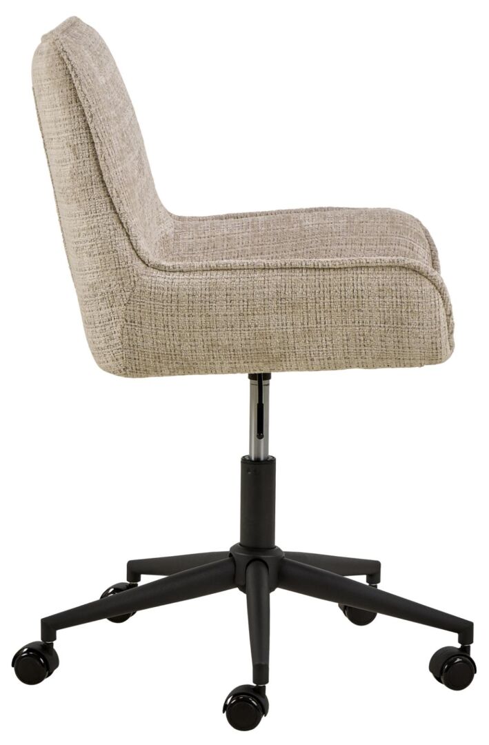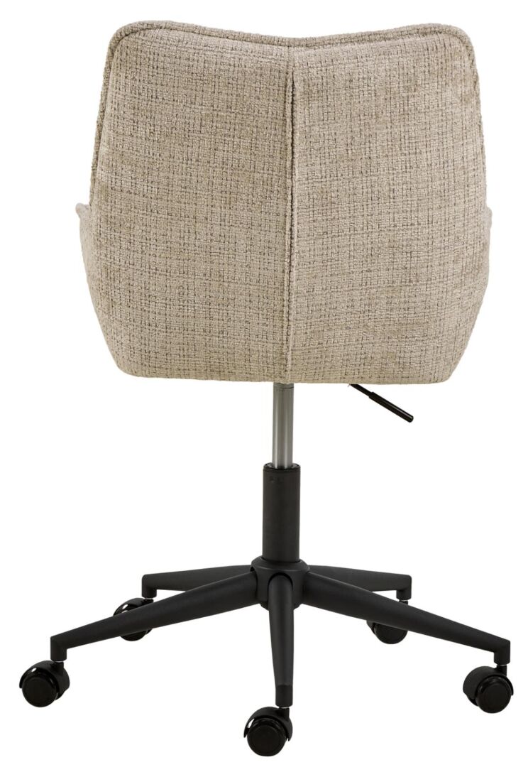 Materiaal & care: 100% polyester; afnemen met een zachte, licht vochtige doek, vlekken deppen. Afmetingen: totale hoogte 90,5 cm; breedte 57 cm; diepte 59,5 cm; zitbreedte 42 cm; zitdiepte 43,5 cm. Kleur: beige bekleding, matzwarte basis. Toepassing: eethoek, keuken of hospitality waar soepele verplaatsing gewenst is.
