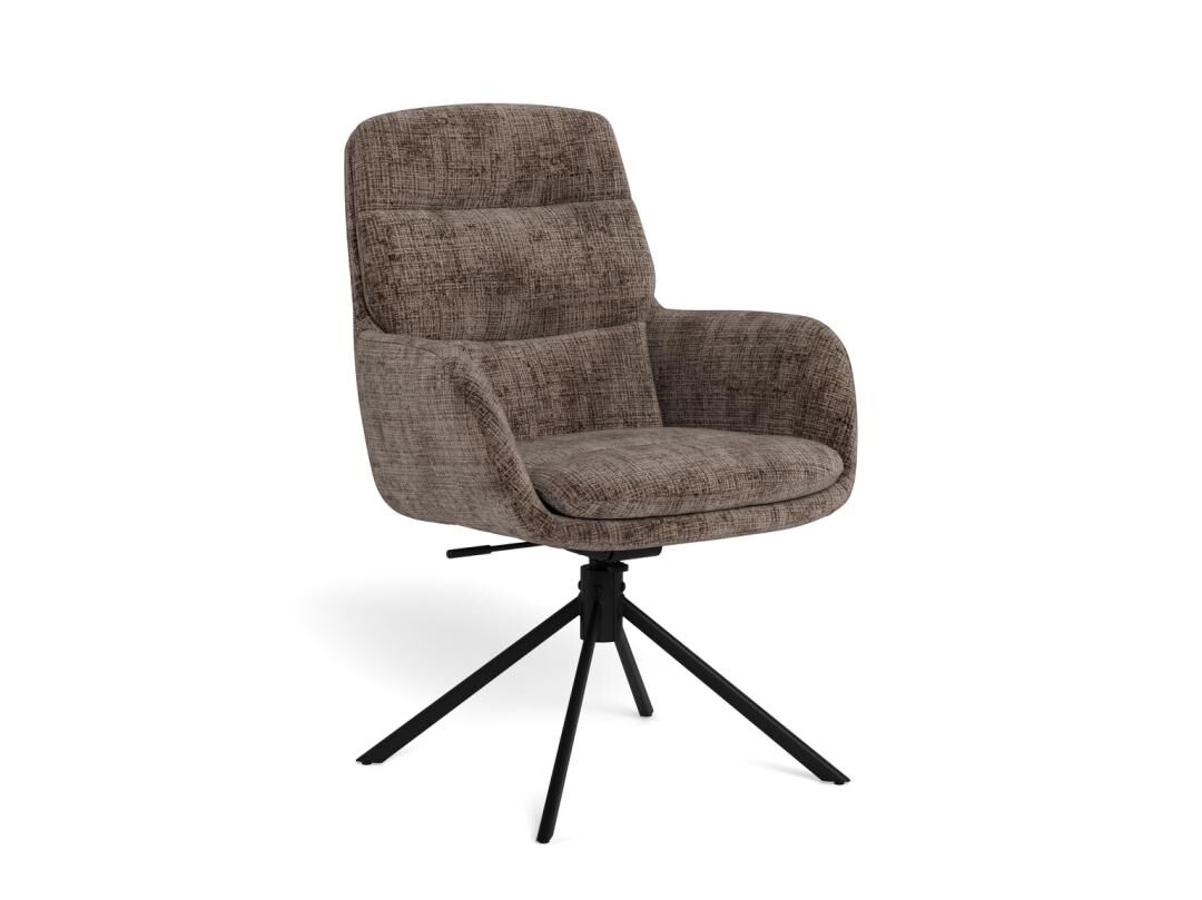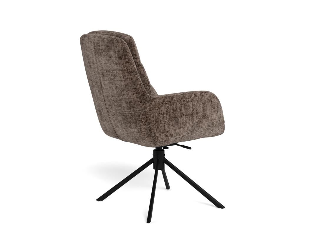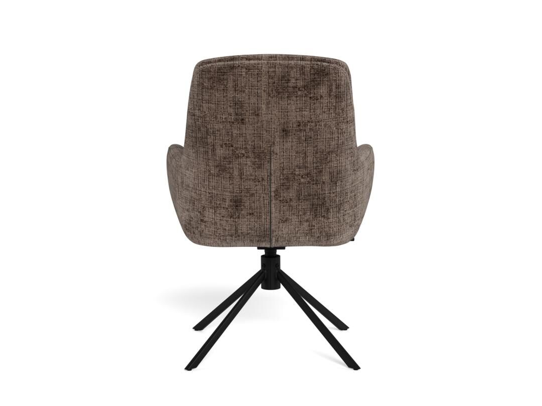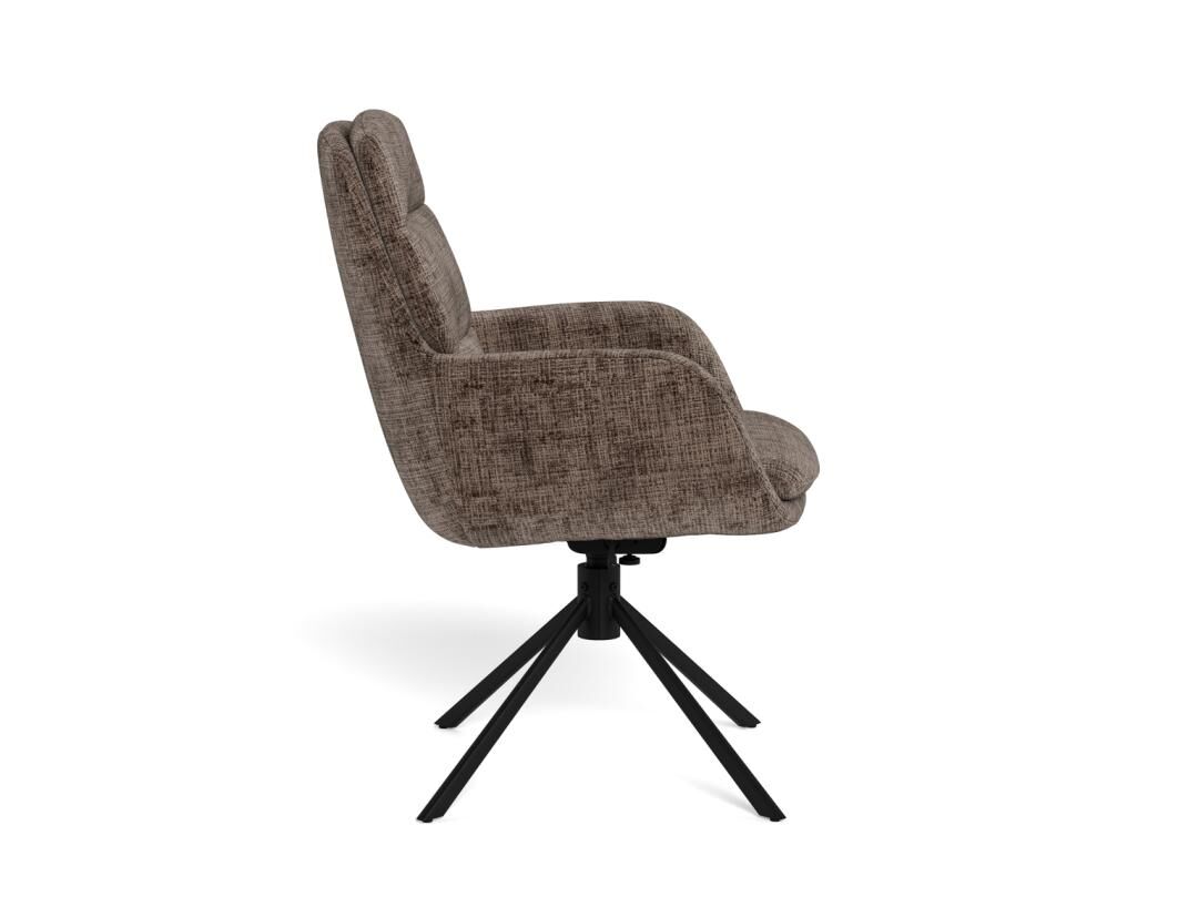 Kleur: vergrijsd bruine bekleding met subtiele structuur, onderstel mat zwart.