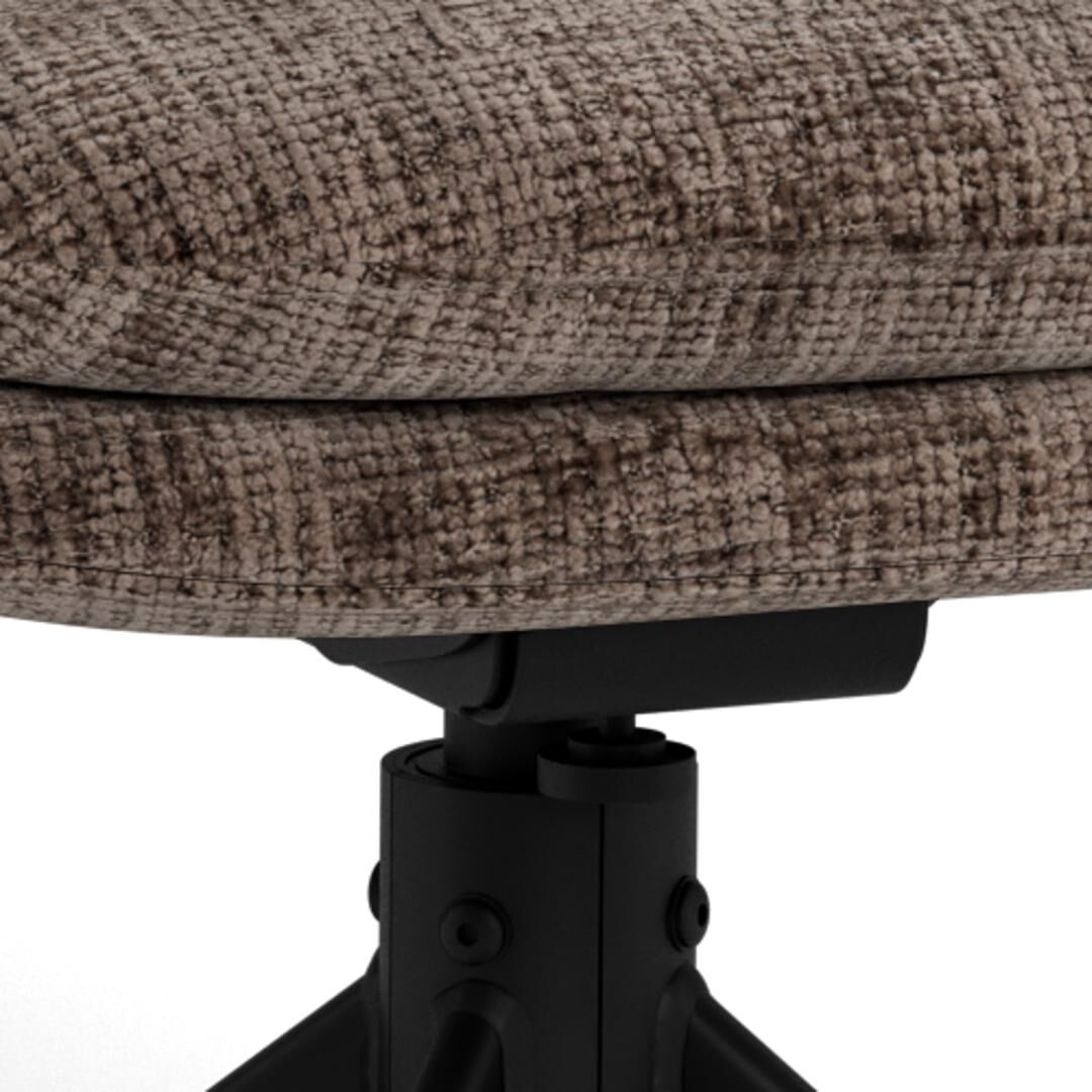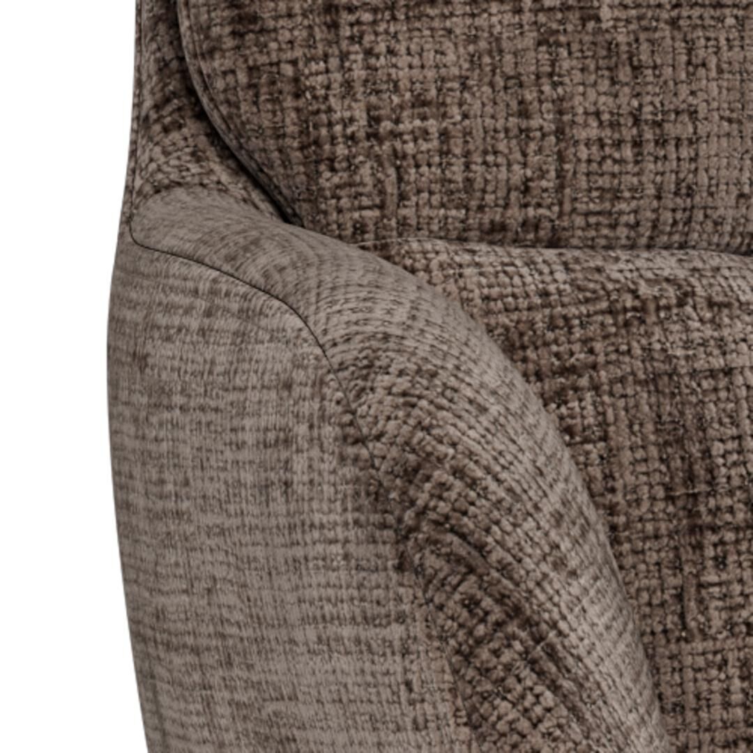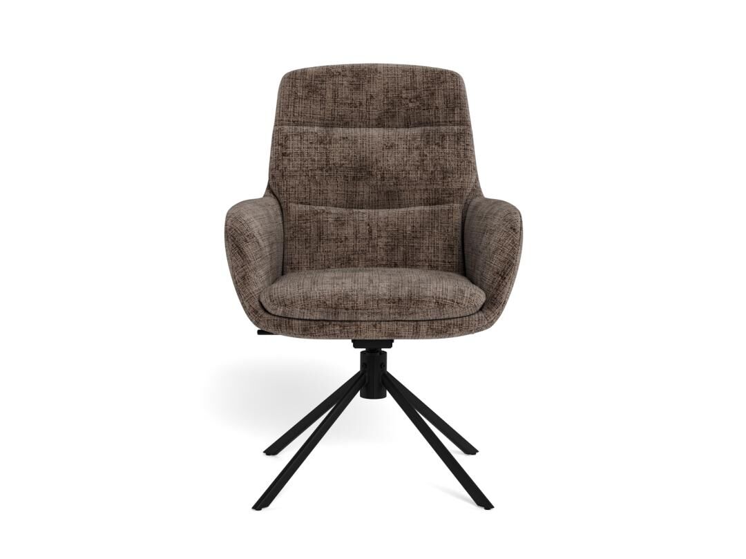 Kleur: vergrijsd bruine bekleding met subtiele structuur, onderstel mat zwart.