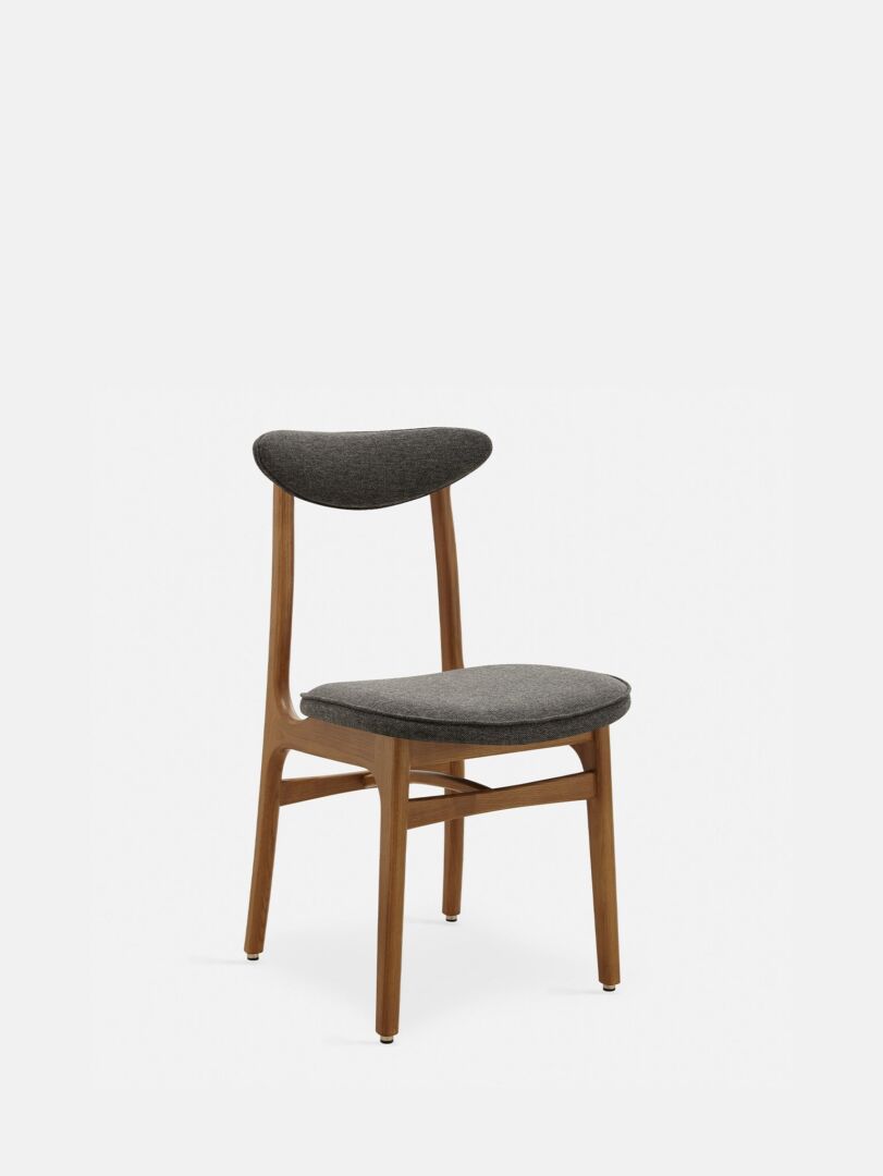 Eindelijk een eetstoel die lang na het dessert nog comfortabel blijft. Zachte grijze wol, een uitgebalanceerde zitschaal en een zwart onderstel met donkerhouten details maken elke maaltijd ontspannen.