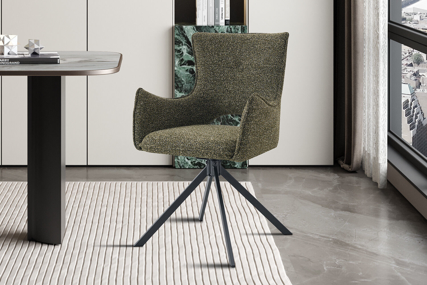 Deze eetkamerstoel draait soepel tijdens een uitgebreid diner met vrienden. De stevige zitting en comfortabele armleuningen maken lang tafelen aangenaam. Minder geschikt voor kleinere ruimtes door het brede ontwerp. Ideaal voor wie comfort boven alles stelt. Een doordachte keuze.