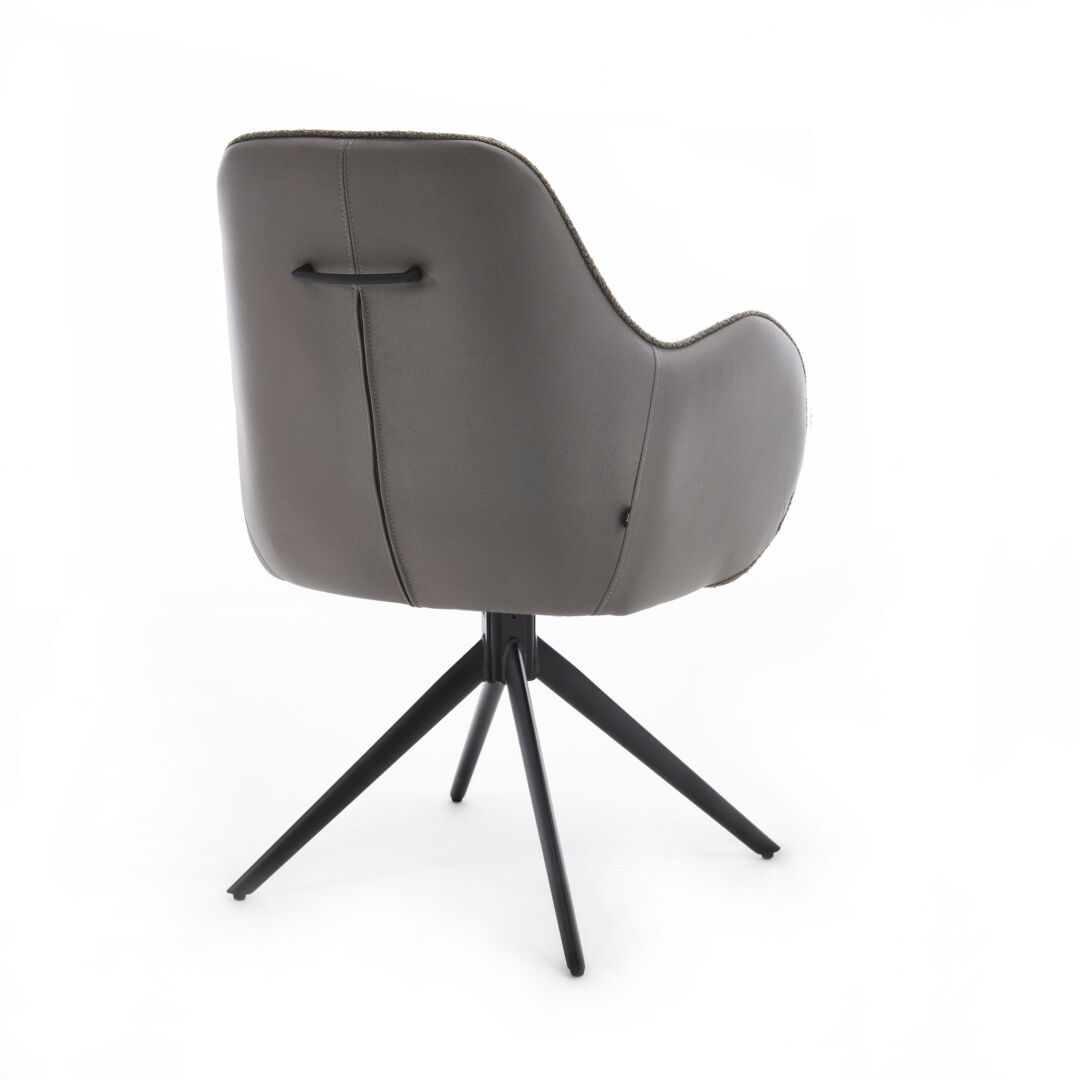 De draaibare stoel in donkergrijs biedt niet alleen comfort, maar ook functionaliteit, waardoor hij perfect is voor zowel moderne als klassieke interieurs. Dankzij het tijdloze ontwerp en de hoogwaardige afwerking past deze stoel naadloos in elke eetkamer of als extra zitplek in de woonkamer. Het gebruik van duurzame materialen garandeert een lange levensduur, zodat je jarenlang kunt genieten van deze elegante aanwinst.