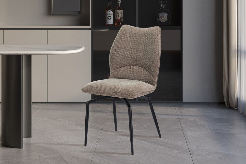 Vriendelijke rondingen, een stabiel onderstel en een zit die je meteen laat ontspannen. Deze eetkamerstoel combineert dagelijks comfort met een verfijnd silhouet voor elke tafel.