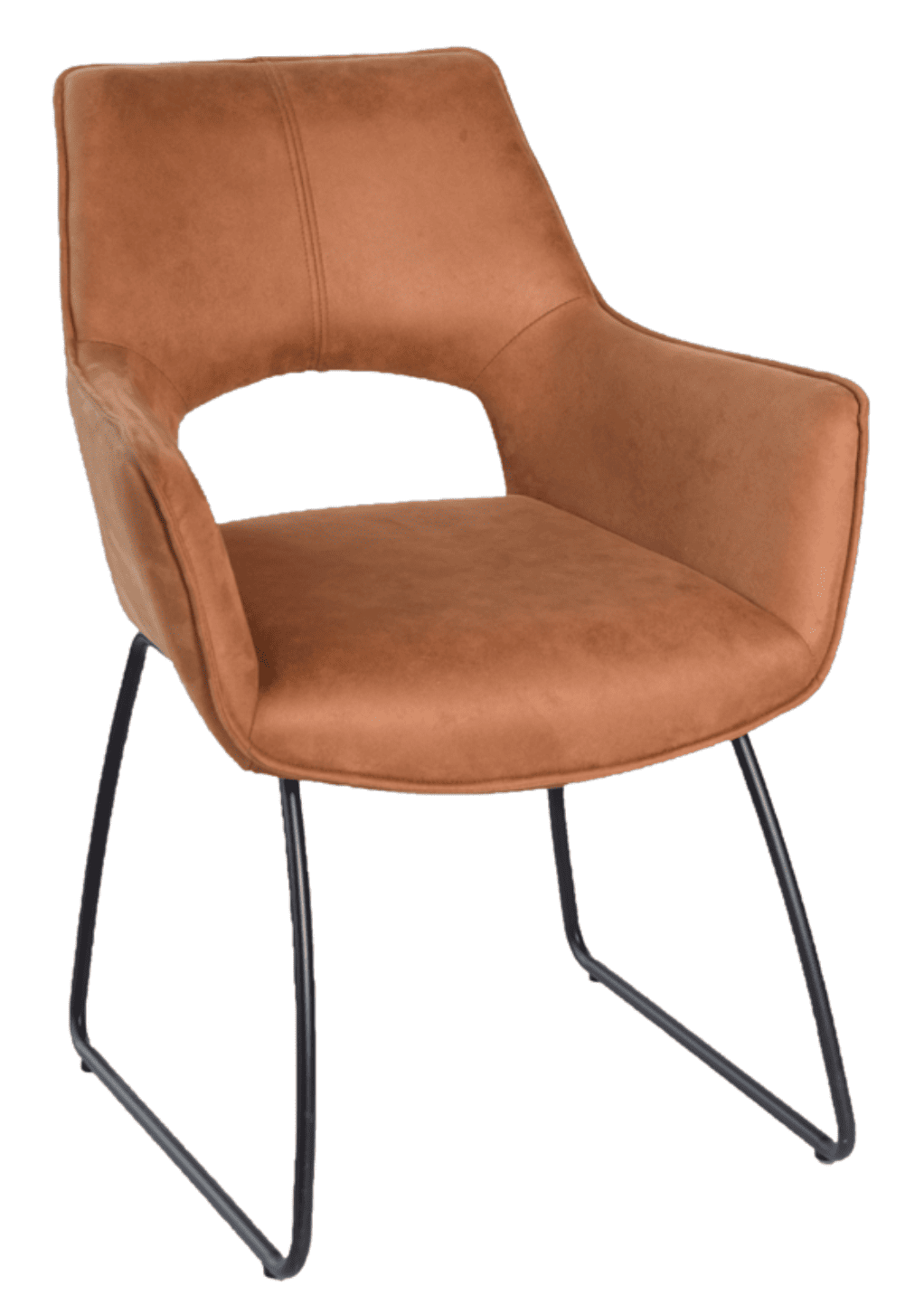 Geef je interieur een eigentijdse boost met deze moderne eetkamerstoel in warme cognac kleur. Deze stoel combineert een industrieel design met ultiem zitcomfort, perfect voor thuis aan de eettafel, in horecagelegenheden, vergaderruimtes of ontvangstruimtes.