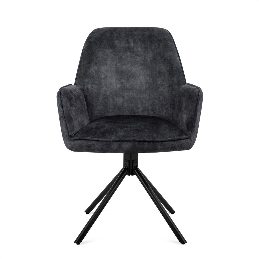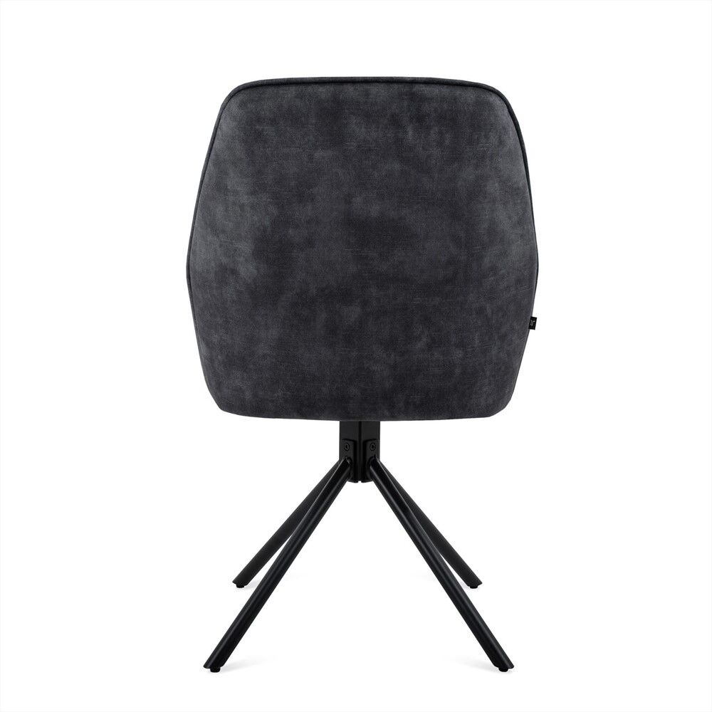 Steunende rondingen, een stabiel frame en een zitting die je meteen welkom heet. Deze eetkamerstoel in antraciet stof combineert dagelijkse degelijkheid met een verfijnd silhouet.