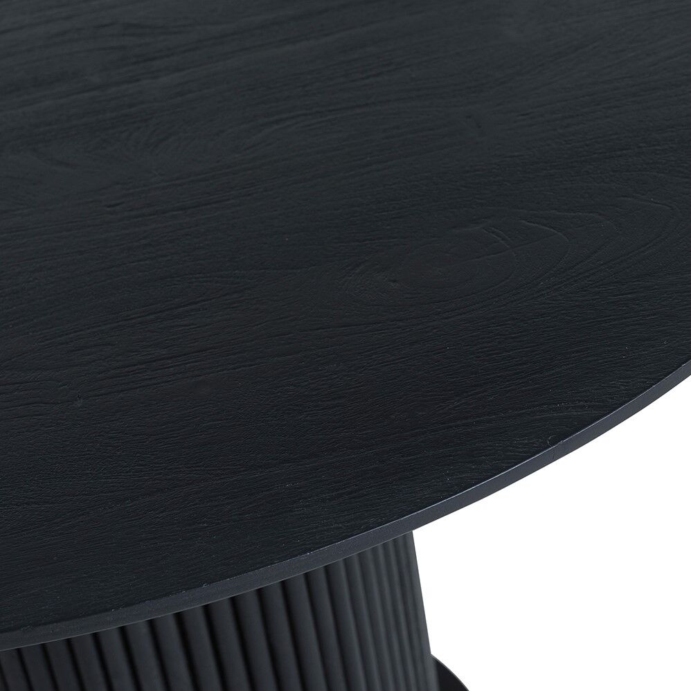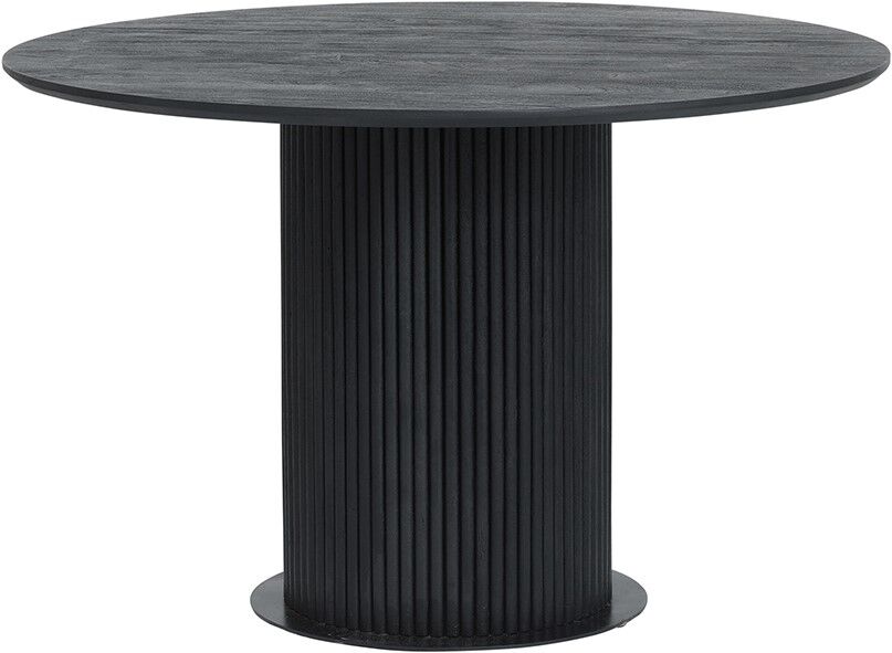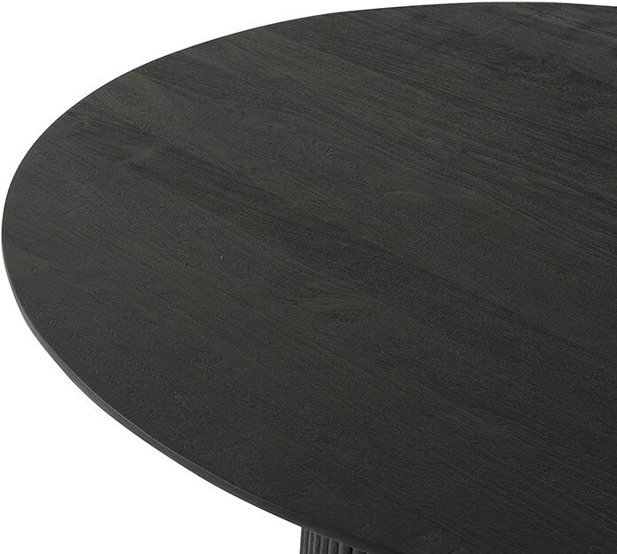 Deze ronde eettafel biedt voldoende ruimte voor een gezinsetentje of een spelletjesavond met vrienden. Het massieve acaciahout oogt stevig en de zwarte lak is onderhoudsvriendelijk. Door het gewicht lastig te verplaatsen. Geschikt voor wie houdt van tijdloze robuustheid.