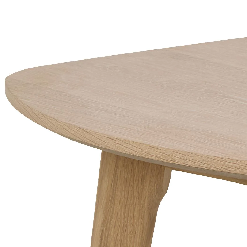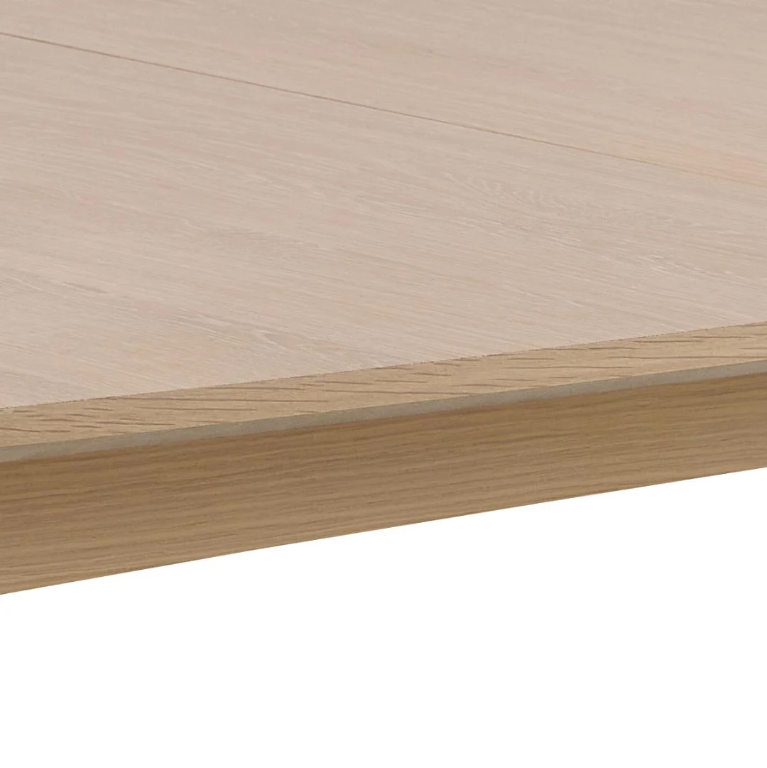 Deze eettafel biedt voldoende ruimte voor een gezinsetentje of werkoverleg aan huis. Het eikenfineerblad oogt modern en de vloerbeschermers zijn praktisch. Minpunt is dat het oppervlak gevoelig is voor vlekken. Geschikt voor wie houdt van strak, Scandinavisch design.