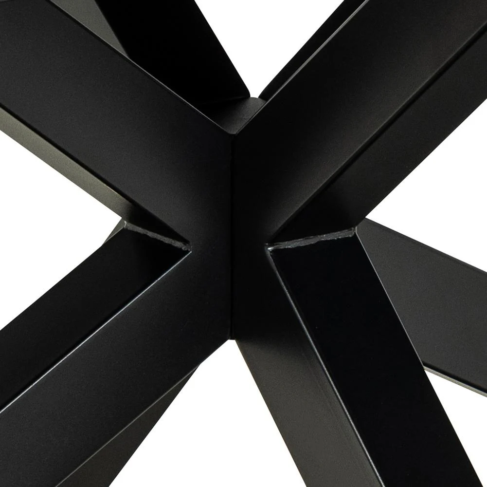 - Stevige stalen poten, ruw gepoedercoat in mat zwart, met kunststof vloerdoppen