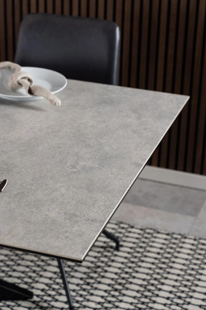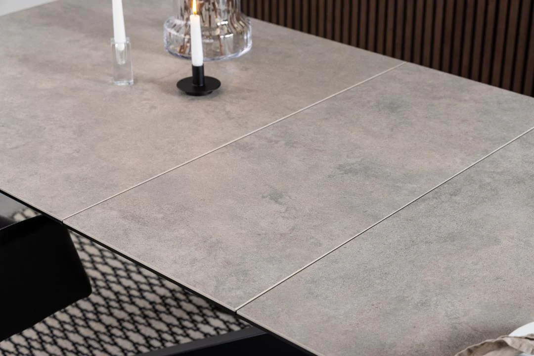 Tijdens een diner met vrienden bood deze eettafel voldoende ruimte en stabiliteit. Het keramische blad is krasvast en makkelijk te reinigen, terwijl het stalen onderstel stevig oogt. Het ruwe oppervlak kan wel lastig zijn bij schoonmaken. Geschikt voor moderne interieurs. Degelijke keuze voor langdurig gebruik.