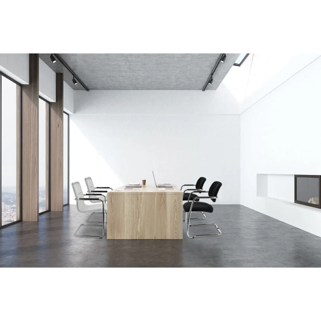 Tijdens lange vergaderingen biedt deze vergaderstoel uitstekende ondersteuning dankzij de comfortabele zitting en stabiele sledeframe. De bekleding in wolvilt voelt zacht aan en oogt stijlvol. Minder geschikt bij beperkte ruimte door wat bredere vorm. Prima keuze voor moderne werkplekken.