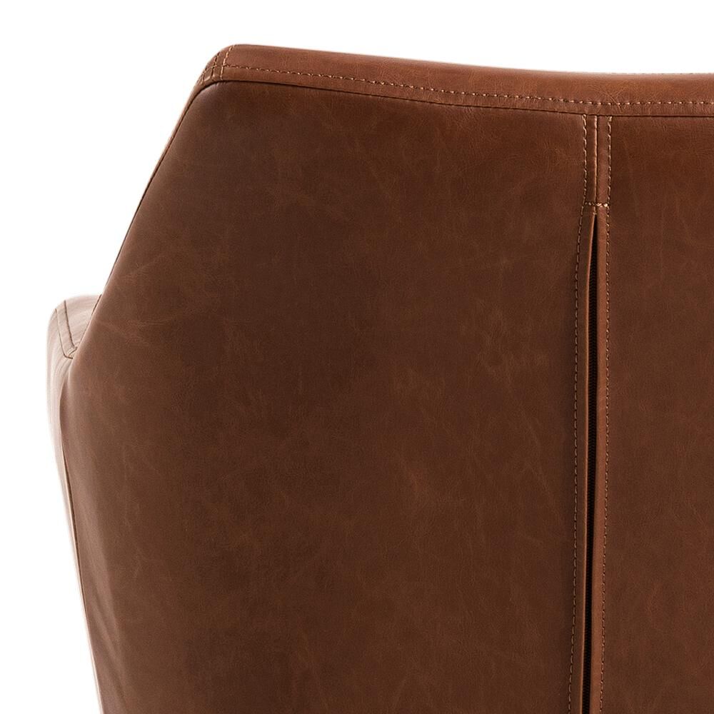 - Bekleding: slijtvast PU in warme brandewijntint; los zitkussen met rits