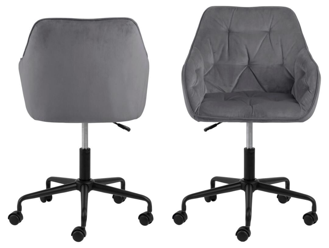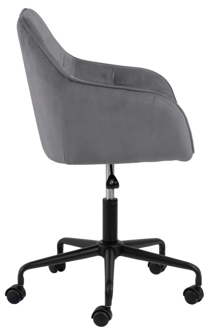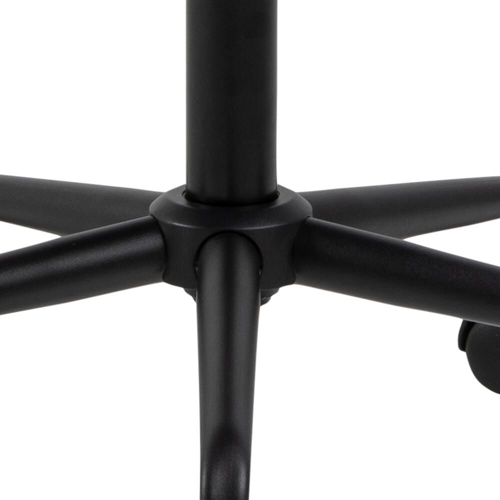 - Constructie: 5‑ster voet van matzwart staal met ruw poedercoating, geremde zwenkwielen, 360° draaibaar en gaslift (zithoogte 46–55,5 cm)