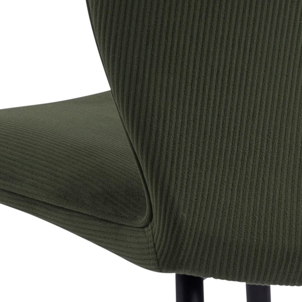Steunende rondingen, een stabiel onderstel en een olijfgroene tint die je eethoek direct kalm laat aanvoelen. Deze armloze eetkamerstoel verenigt organisch design met langdurig zitgemak.