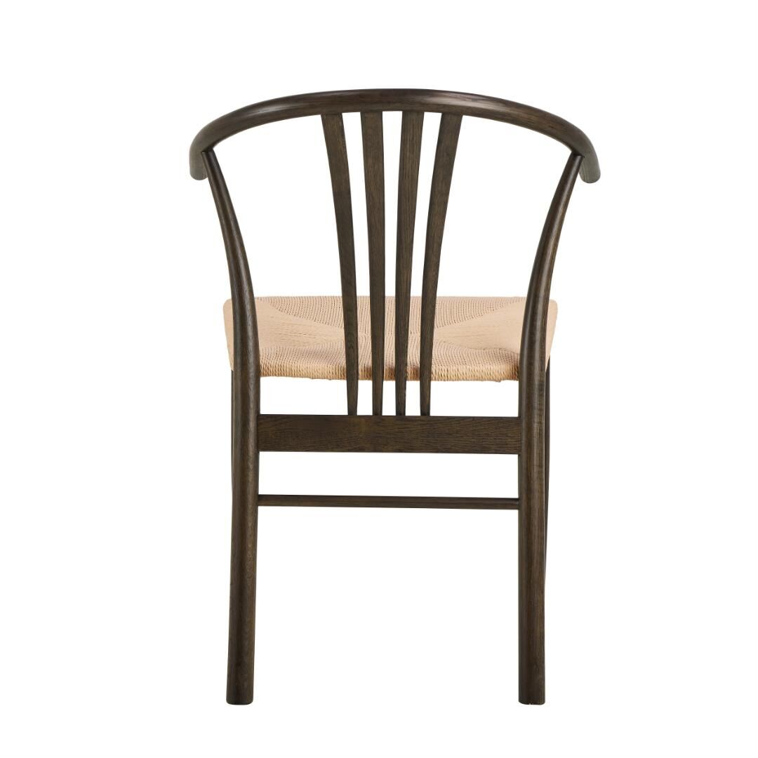 Materiaal & onderhoud: eikenhout en papercord; schoonmaken met een zachte, licht vochtige doek, vlekken direct deppen. Afmetingen: totale hoogte 83 cm; zithoogte 46,4 cm; breedte 54 cm; diepte 54 cm. Kleurstelling: gerookt eiken met witte zitting. Verpakt per 2 stuks. Combineert moeiteloos met eettafels, banken of gemengde zitsets; bijpassende barkrukken en armstoelen uit dezelfde sfeer zijn eenvoudig te stylen.