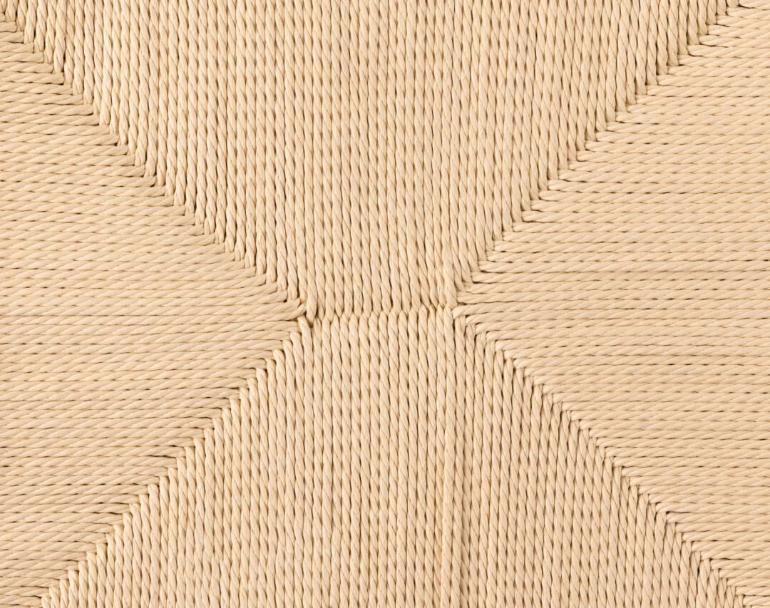 - Constructie: massief eiken frame, mat gerookt en NC-gelakt; witte papieren vlecht (enveloppatroon)