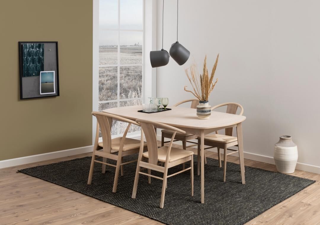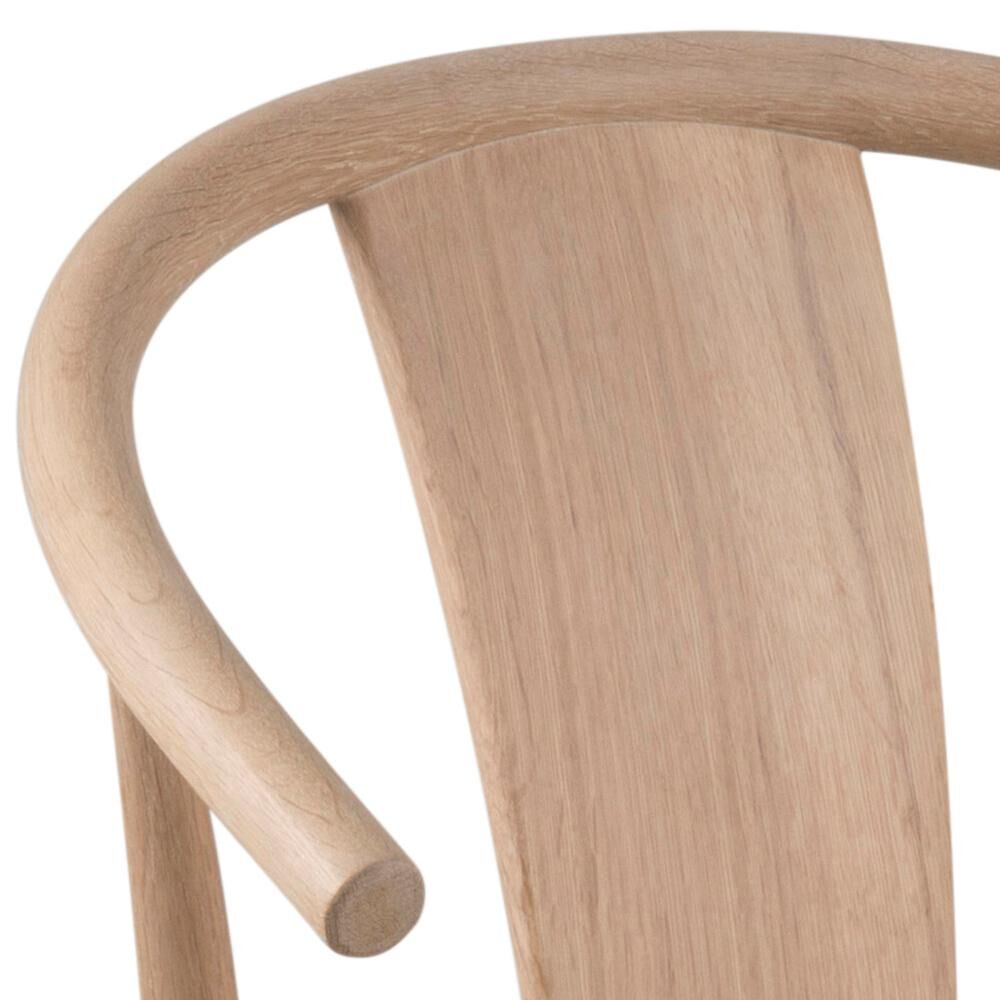 Ondersteunende rondingen, een rustig silhouet en een zitvlak dat je meteen uitnodigt. Deze eetkamerstoel van witgepigmenteerd, geolied eiken met gevlochten papierkoord in gebroken wit brengt comfort en rust aan tafel.